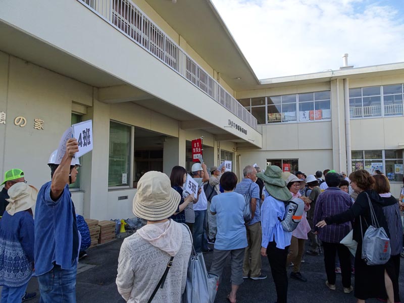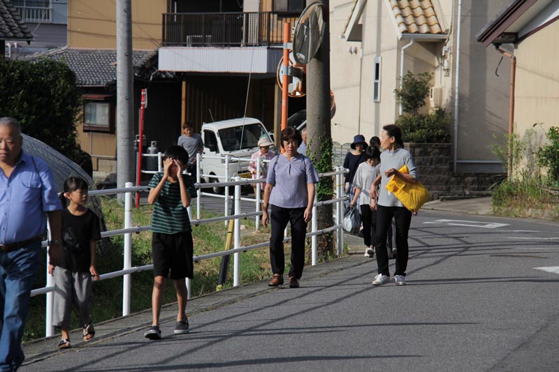 各世帯が仮避難所(はず保育園駐車場)に集まってきます。