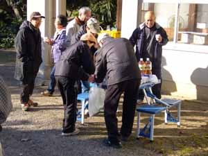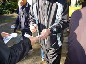 休憩所にて「参加カード」にスタンプを