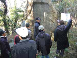 山の上にある証文岩を見学しました |