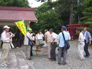 ![]() 急な坂道を上ったところに幡頭神社があり ました。休憩です。汗をかいたので ポカリスエットがおいしかった。当番の 本郷組町内会の役員さんありがとう |