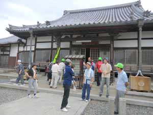 | H24.9.2(日)の様子です。「こどもの国駅」は7:54、「東幡豆駅」は7:57に乗車して、8時に「西幡豆駅」に集合しました。今回は、友引市の会場 になる祐正寺、隣の徳林寺、それから「はずヶ丘」にある門内神社(かいとじんじゃと読みます)を巡って東幡豆駅まで歩くコースでした。 天気は良かったけど、蒸し暑く、32人が汗をたっぷりかいたウォーキングでした。 |
