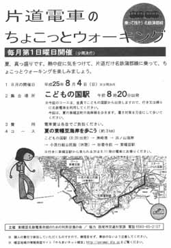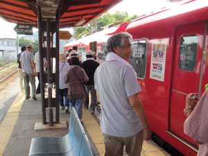 H25.8.4(日)の様子です。先月と同じで50名もの人が「こどもの国駅」に集合しました。今回は、昨年の8月と同じコースですが、ストーンカップは7月28日に終わってしまったので、その見学はありませんが、晴れ渡った今年の夏は特に暑い。しかし静かで時折涼しい海風を受けながら島の浮かぶ三河湾の景色を楽しみながら東幡豆駅に向かいました。