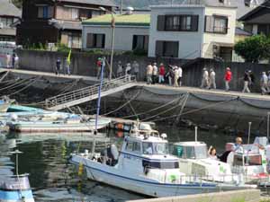 中柴の船溜まりです。もうすぐ休憩の小見行公民館 |