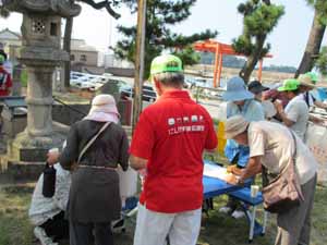 休憩です。中には「にしがま線応援団」のシャツを着ている人もいます。乗って残そうです。お茶当番の上畑町内会の役員さん、お疲れ様。冷えたお茶&スポーツドリンク、うまかった |