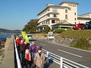 冬のと言っても、小春日和で快晴で風はなくいい汗をかきました。三河湾の眺めは最高で、40人の参加者で一緒に東幡豆駅まで歩きました。また、休憩場所では主催者代表で東幡豆区長でもある市川さんから12月7日(土)の「名鉄西尾蒲郡線利用促進大会」のPRの話を聞き、みんな参加しようと決めました
