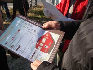 「名鉄西尾蒲郡線利用促進大会」のチラシです。みんなで参加しよう!と声を掛け合い、休憩後は東幡豆駅目指して再出発しました |