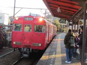 7時57分発、吉良吉田行きに乗車します。もっとも東幡豆駅からの下りは、すべて「吉良吉田」行きです |