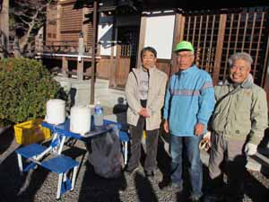 今回のお茶当番は、中柴町内会です。温かいお茶をありがとう! 写真は中柴町内会の役員さんと利用促進の会の会計さんです。ご苦労様です |