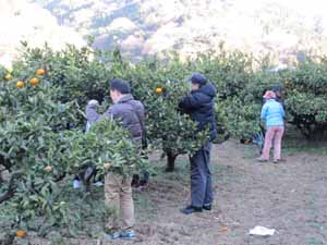 休憩の後は、みかん狩りを先に行いました。ハサミ20丁と袋まで用意してくれて、みんな笑顔でチョキチョキ切りました |