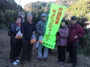 みんな、こどもの国駅と東幡豆駅から乗車して、西幡豆駅下車し8時にスタートしました。寒かったですが、天気が良く今回も50人近くの参加があり、いい汗をかきました。