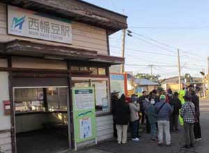 東幡豆駅に三々五々集まってきました。7時57分の乗車です