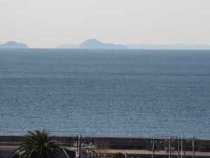 空気が澄んでいて、三重県側までよく見えまして、神島、菅島、答志島、志摩半島までが見えるのです。写真は神島です