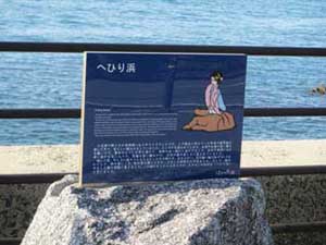 寺部海岸にある幡豆の民話「へひり浜」の案内板です
