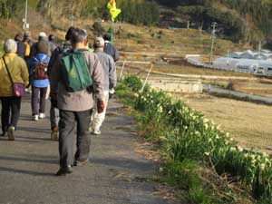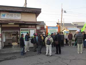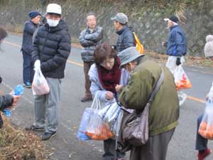 みんな、こどもの国駅と東幡豆駅から乗車して、西幡豆駅下車し8時にスタートしました。寒かったですが天気が良く今回、40人の参加がありました。みかん狩りの後は予定通りに西幡豆駅に戻った人、山の方に回り三ヶ根トンネルを通って、上畑地区から東幡豆駅に向かった人と2グループに分かれました。筆者は三ヶ根トンネルグループです。どちらもいい汗をかいて、無事に帰路につきました。
