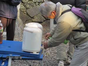 龍蔵院前で休憩です。熱いお茶が最高です。谷組町内会の役員さん、ご苦労さん