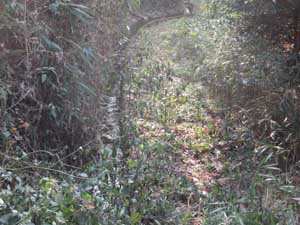 上畑地区に向かって下がっていきます。この道は、昭和30年代バス路線になっていて、東幡豆駅−三ヶ根山−形原駅を結んでいました(今は昔の話) |