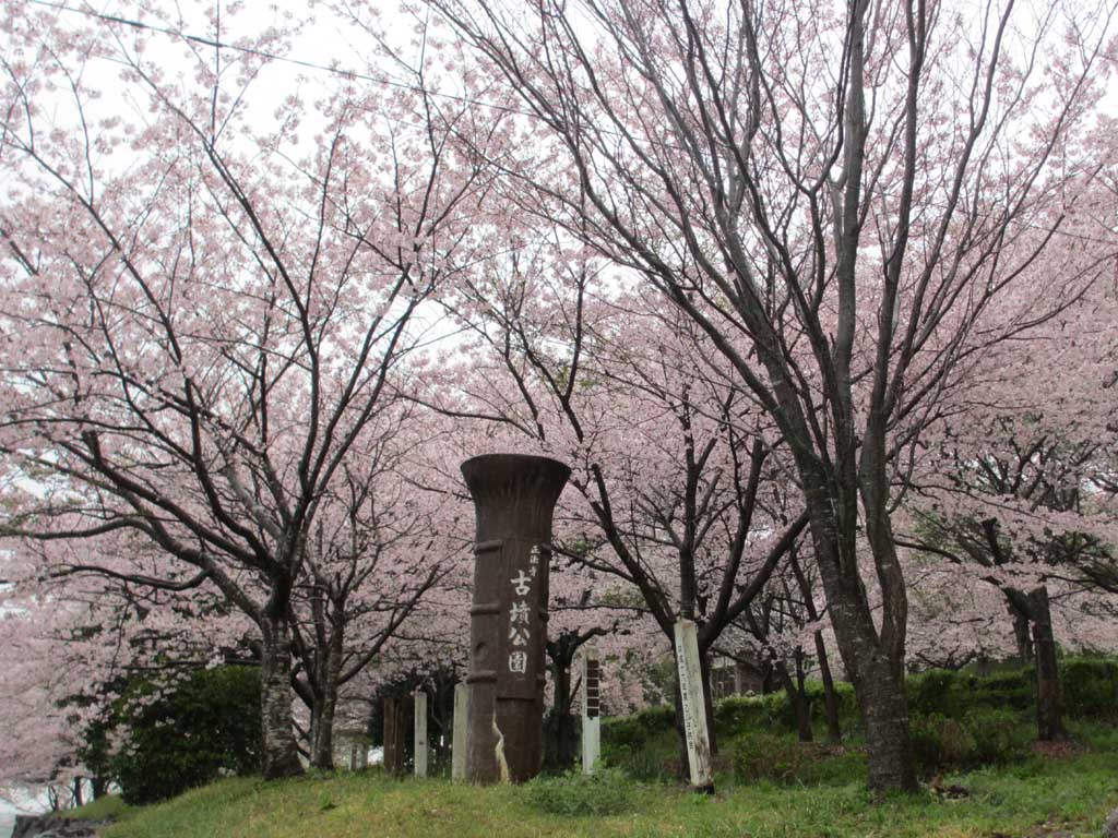 正法寺古墳に着きました。雨に濡れた満開の桜が出迎えです |