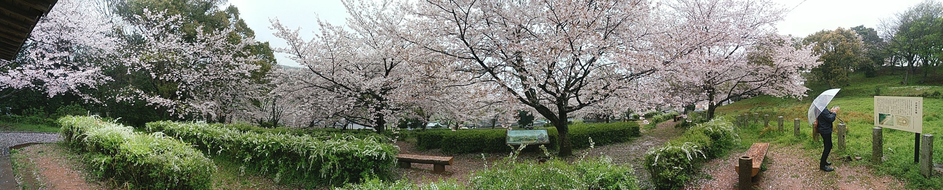 雨の東屋から撮った桜のパノラマです |