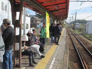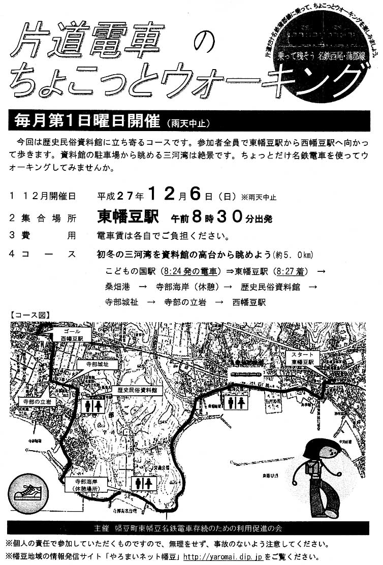 H27.12.6(日)の様子です。こどもの国駅からの人は1区間を乗車し、「東幡豆駅」を8時半の出発です。会長挨拶と注意事項の説明があり出発しました。