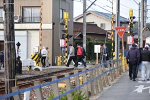 駅すぐ西側の踏切を渡り坂を下ると
