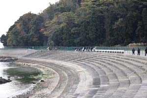 海岸沿いを歩いて、小浜地区の堤防を