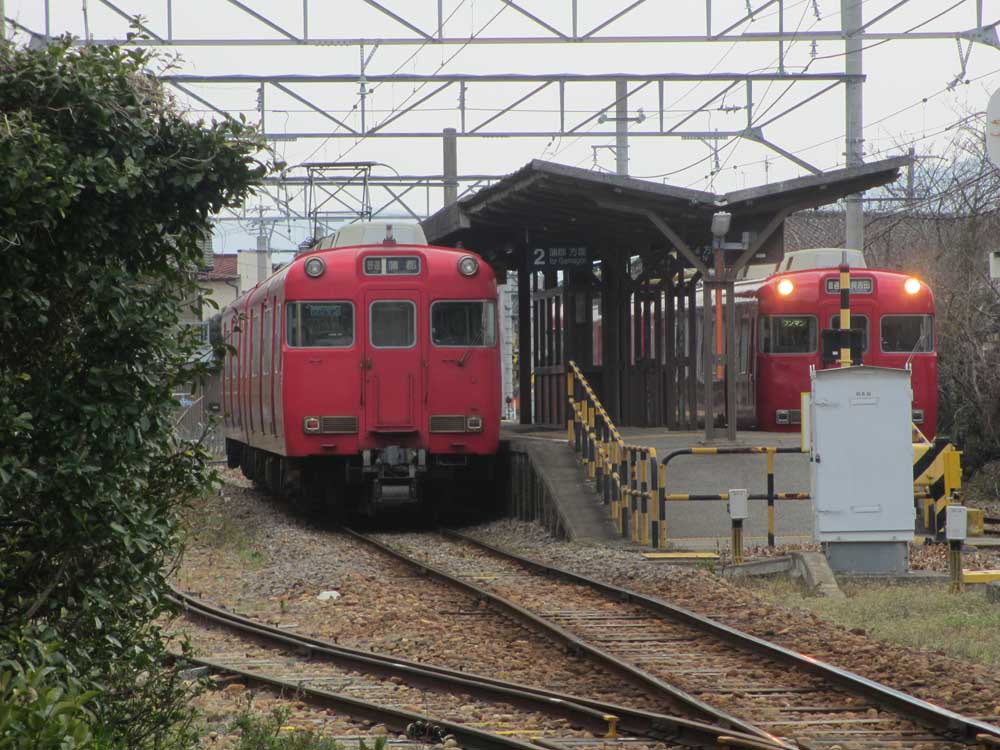 単線の蒲郡線。すれ違いのため、蒲郡行