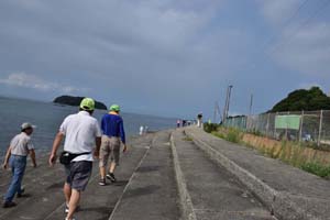 35人が参加して、休憩の後は、ストーンカップ観戦の人、東幡豆駅に向かい解散した人に分かれての行動です。今日は、大量の汗をかいてのウォーキングでした。雑談をしながらのウオーキングは楽しかったです