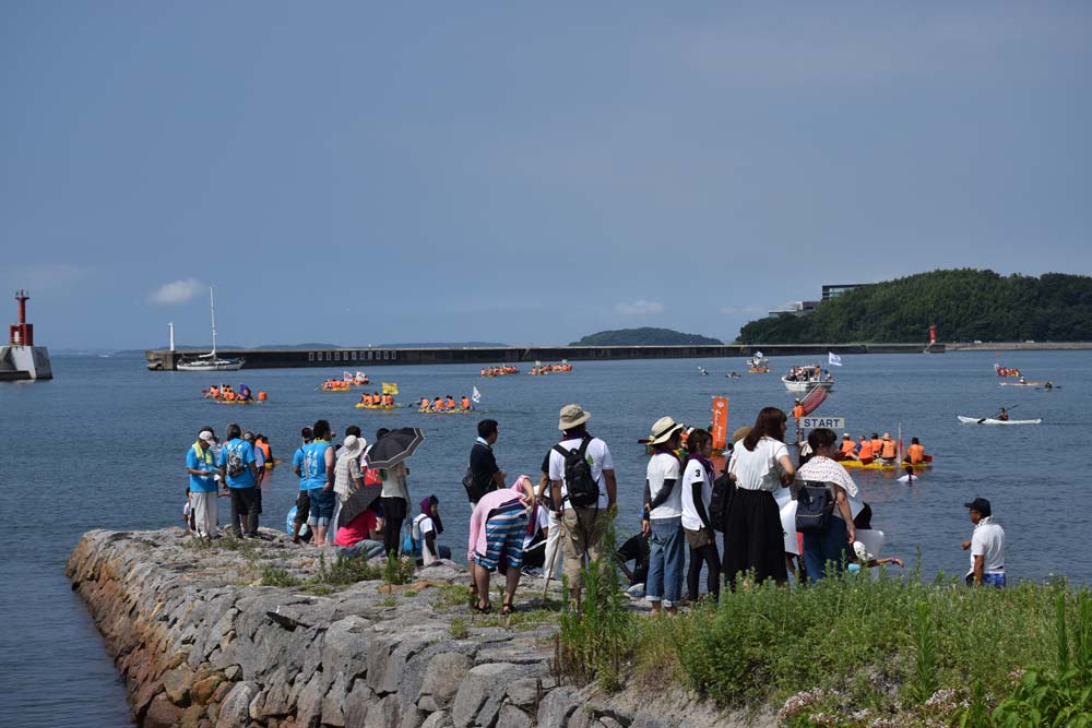 すぐ前の海岸では、ストーンカップが始まっていました。こちらは、灼熱の暑さでも絶好の天気です