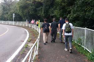 キャンプ場を左手に見ながらの坂です。会長は坂を上らず、休憩所までショートカットコース。休憩所まで筆者が撮影