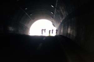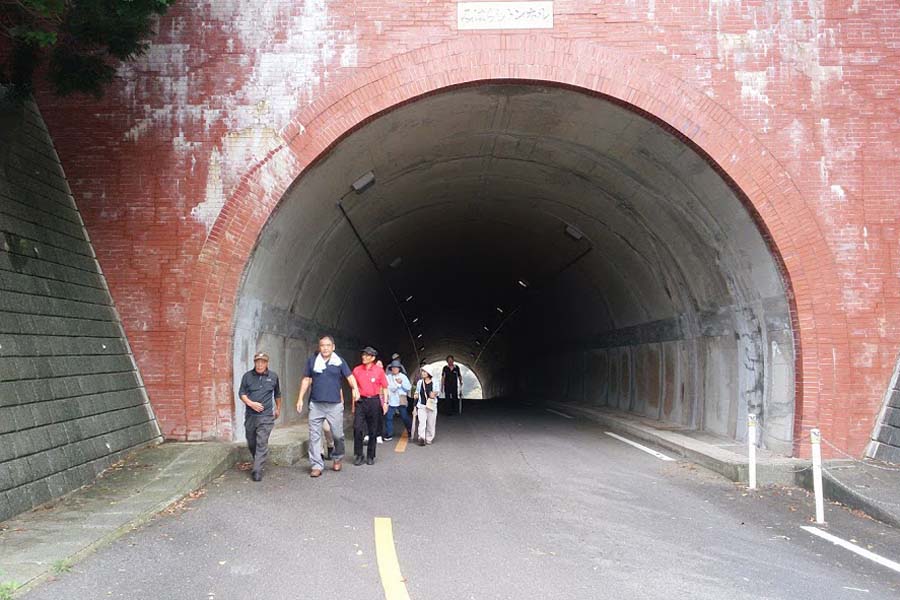 坂は結構きつかったです。ようやく峠の「見晴らしトンネル」です。中から出口を撮りました。凄く眩しいです