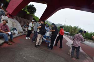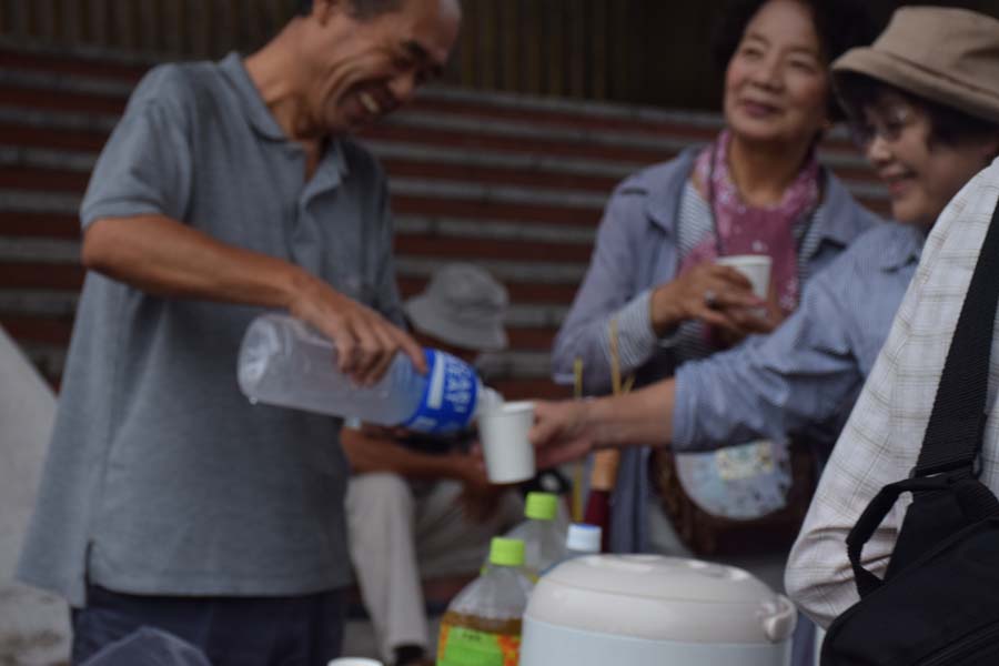 休憩所お茶当番の森組長内会の役員さん、ご苦労様です