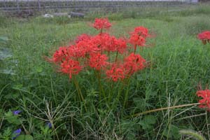 休憩後、東幡豆駅に向かって歩き出しました。こどもの国から出て、田んぼ、畑を見ながら歩きます。彼岸花の赤が眩しいです