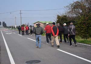 鳥羽駅に向かう遠距離ウォーキングで帰る人もあり