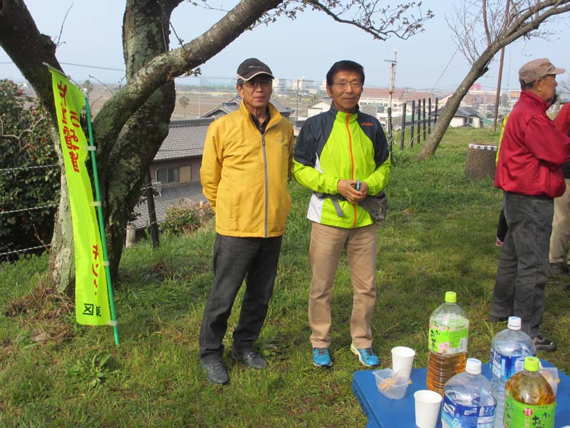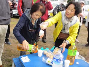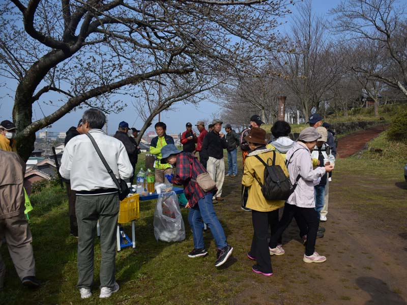 上の東屋で昨年度の参加賞の交付と