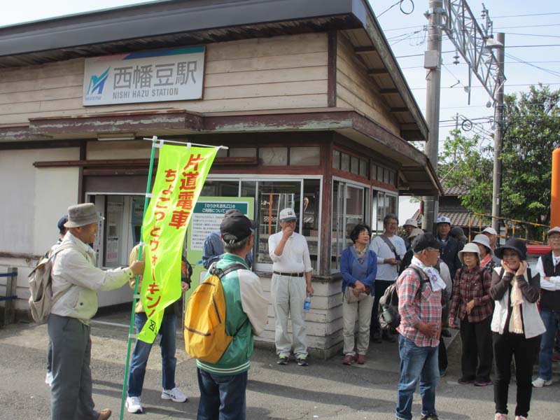 西幡豆駅から出発しました。今年も天気に恵まれ、35人がいい汗をかきました。