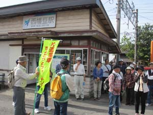 西幡豆駅で新会長から挨拶と注意事項伝達があって出発です。写真を新会長の背後から撮っています