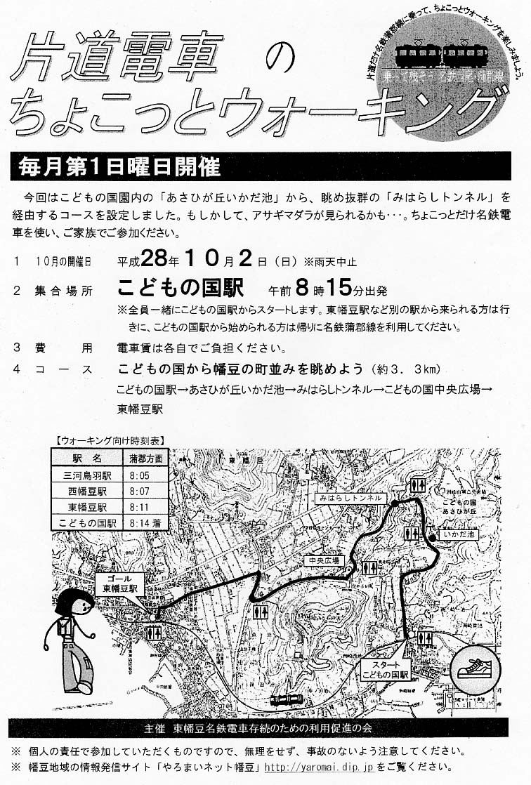 H29.10.1(日)の様子です。「東幡豆駅」から1区間のみの乗車ですが、「こどもの国駅駅」で下車。会長挨拶の後に出発しました。