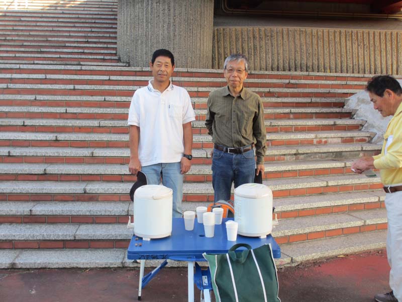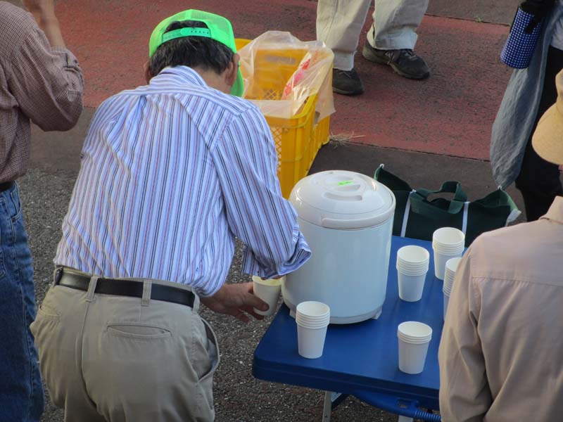 休憩所お茶当番の上畑長内会の役員さん、ご苦労様です