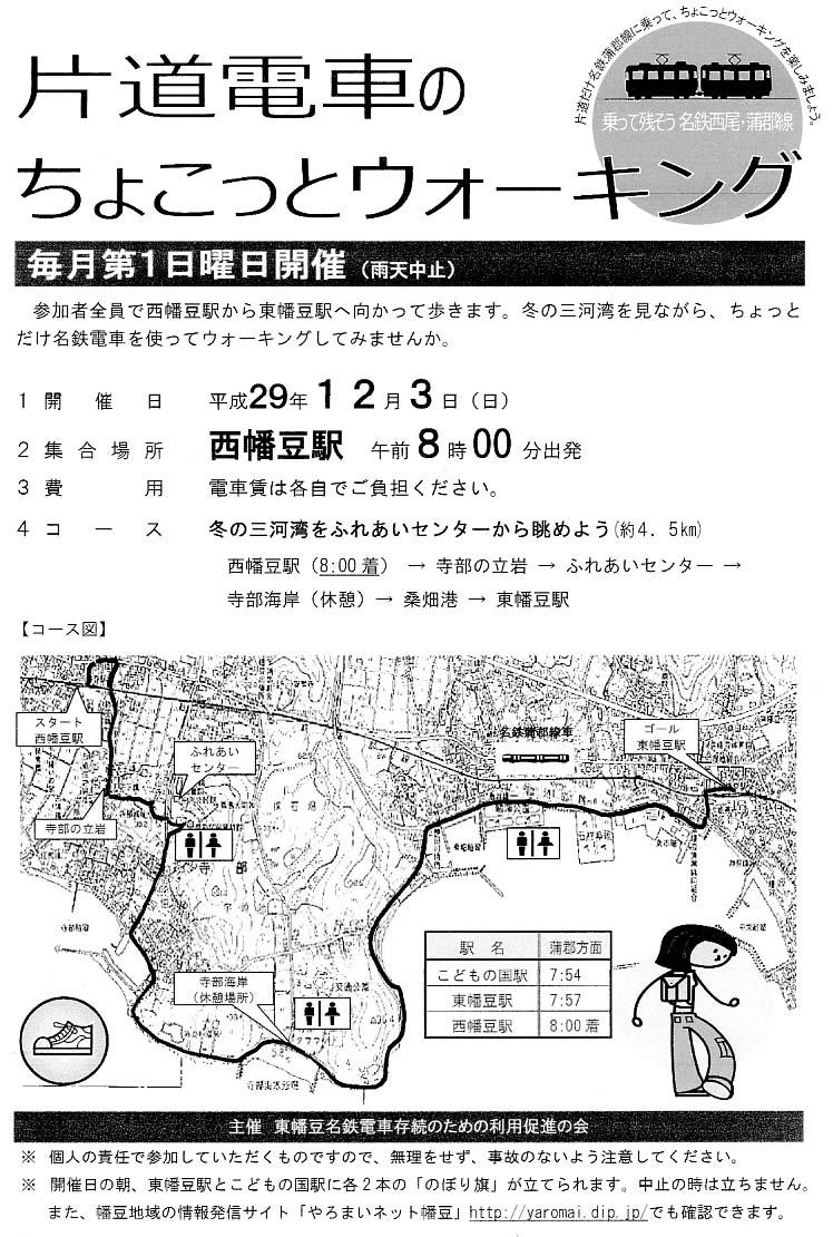 H29.12.3(日)の様子です。こどもの国駅からの人は2区間を乗車し、「東幡豆駅」からは1区間のみであるが、7時57分に乗車して「西幡豆駅」を