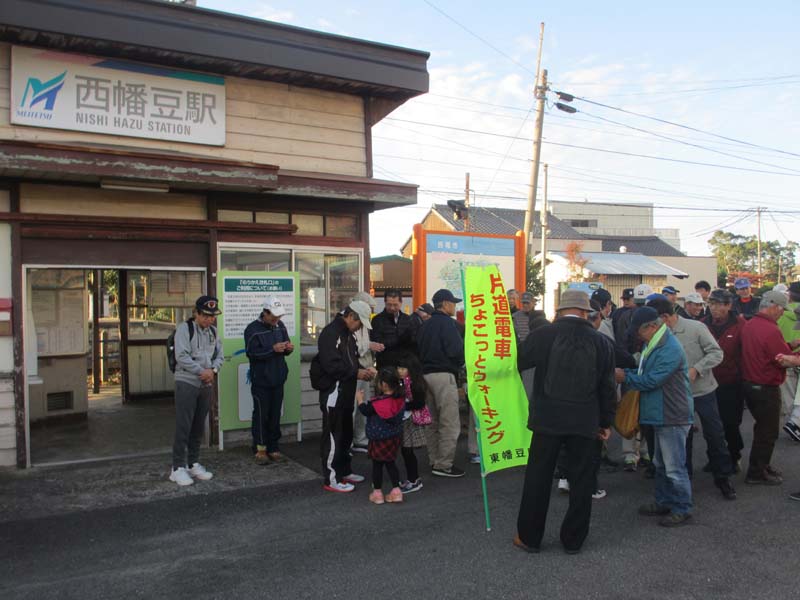 今回は45人と大勢の参加でした。いい汗をかいて東幡豆駅まで歩きました。