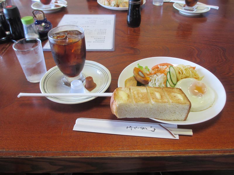 その別ルートの目的は民宿「岡田屋」でのコーヒーブレークです。今年も同じパターンになってしました。モーニングサービスのサラダには秋らしく柿が乗っていました。写真は、ウォーキングには関係ないですが、まー、有意義ないい汗をかいたウォーキングでした