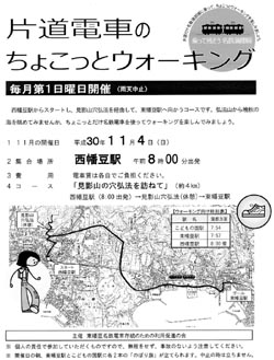 ![]() 筆者は所用で電車の乗らず、メンバーを乗せた電車を見送りました。一昨年は、紅葉の桜でした。台風ですね、寂しい!! 春を待ちましょう |