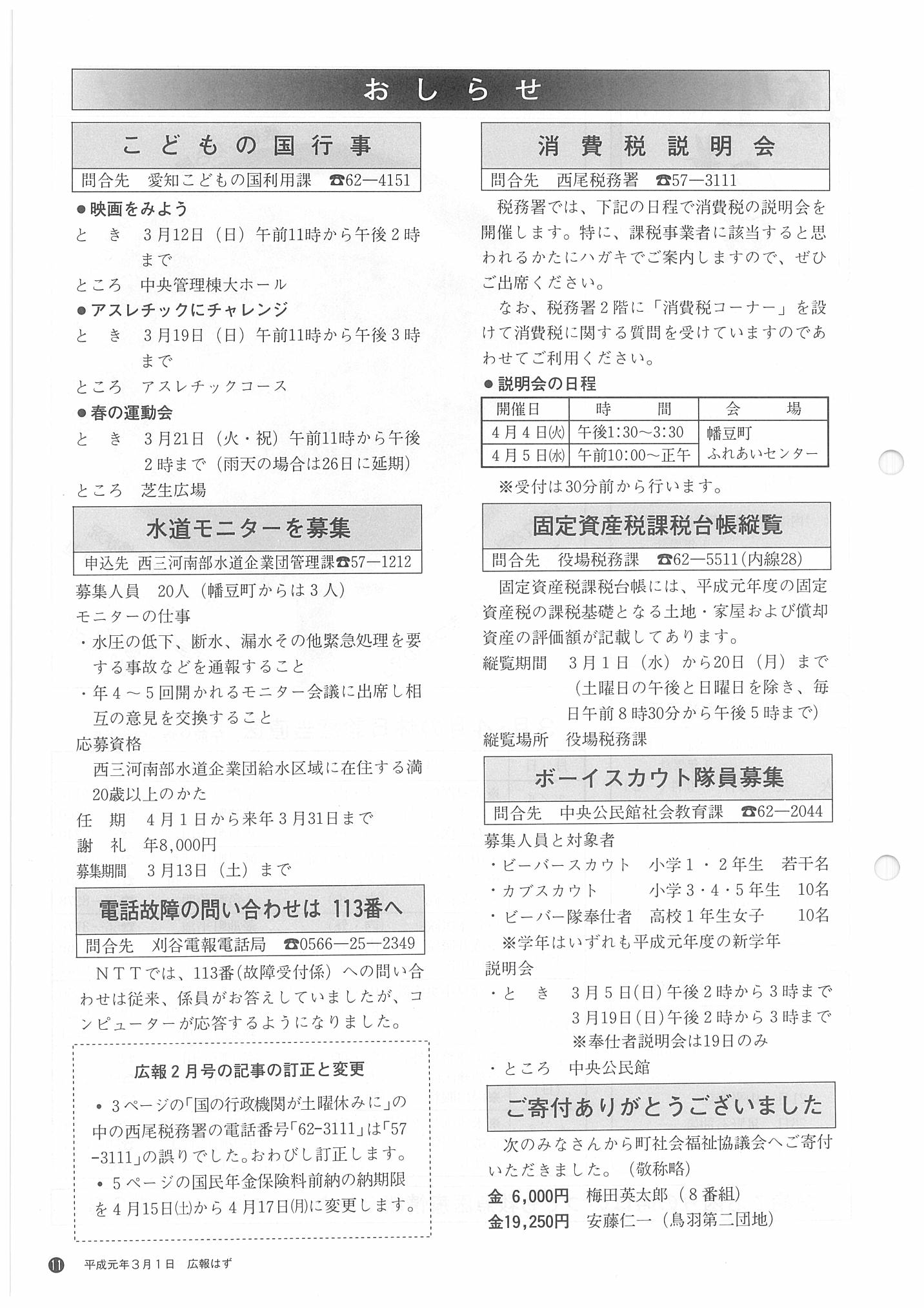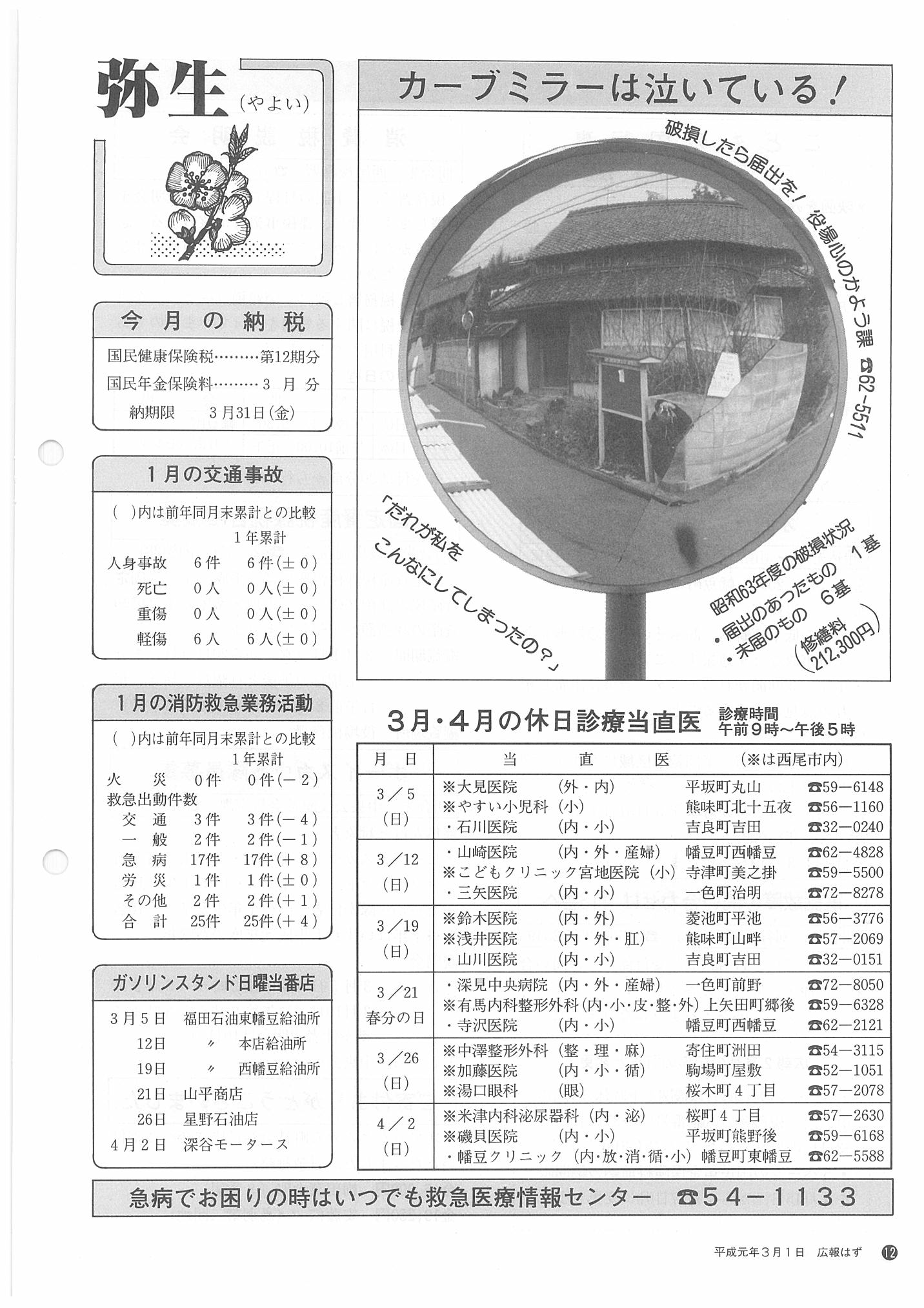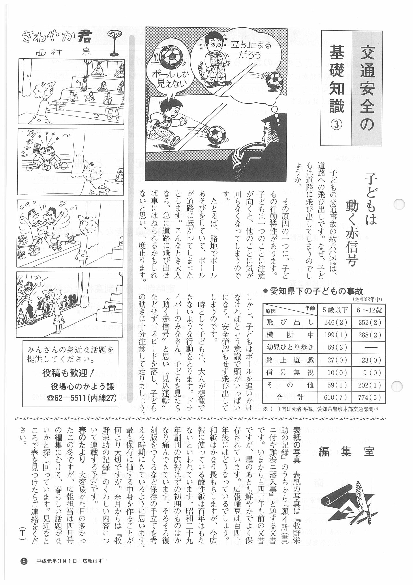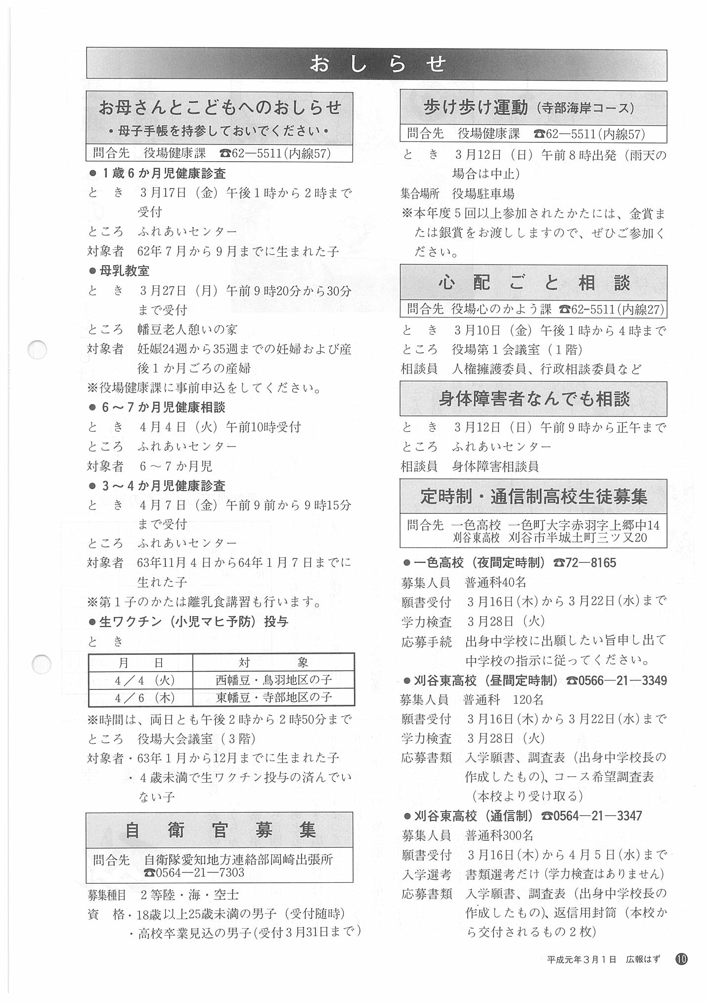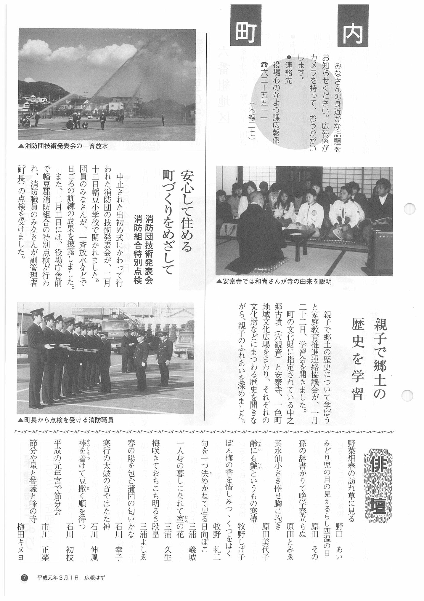 「広報はず」 1989年(平成元年) 3月号 目次