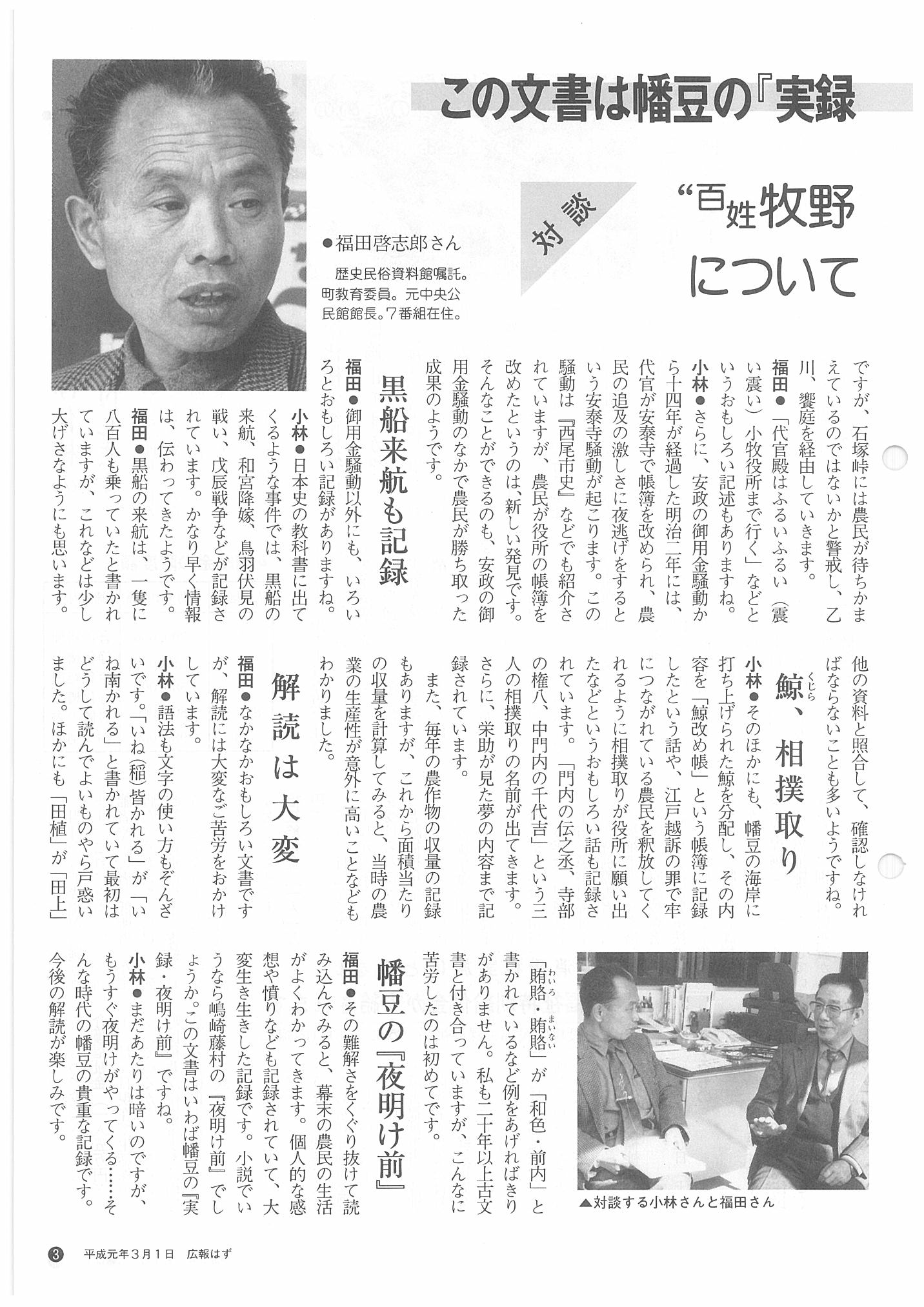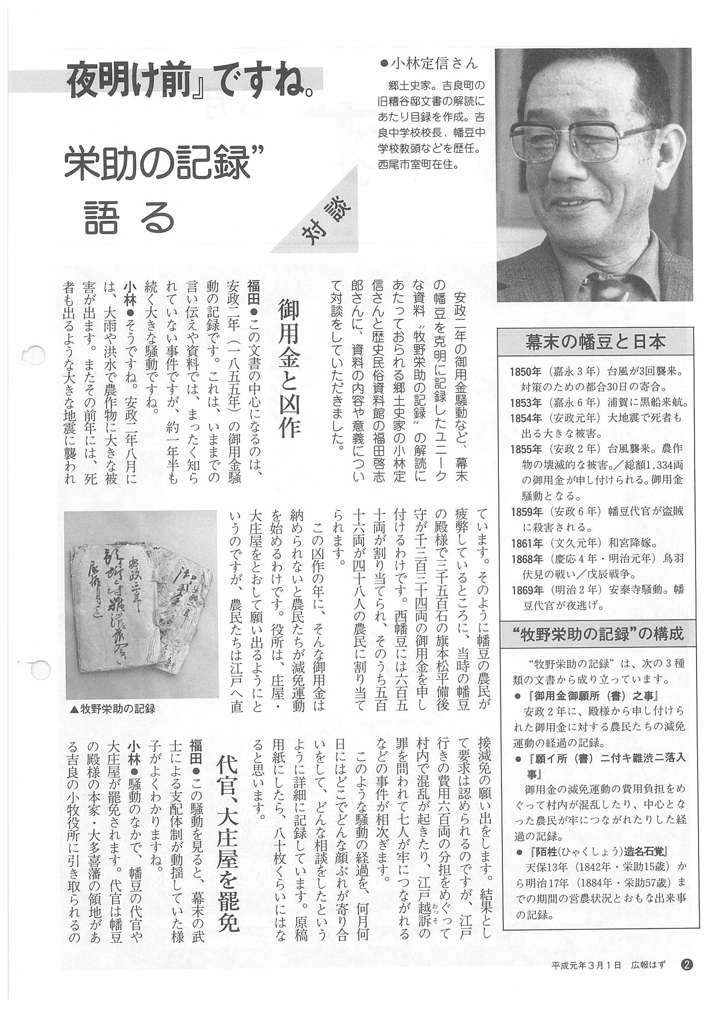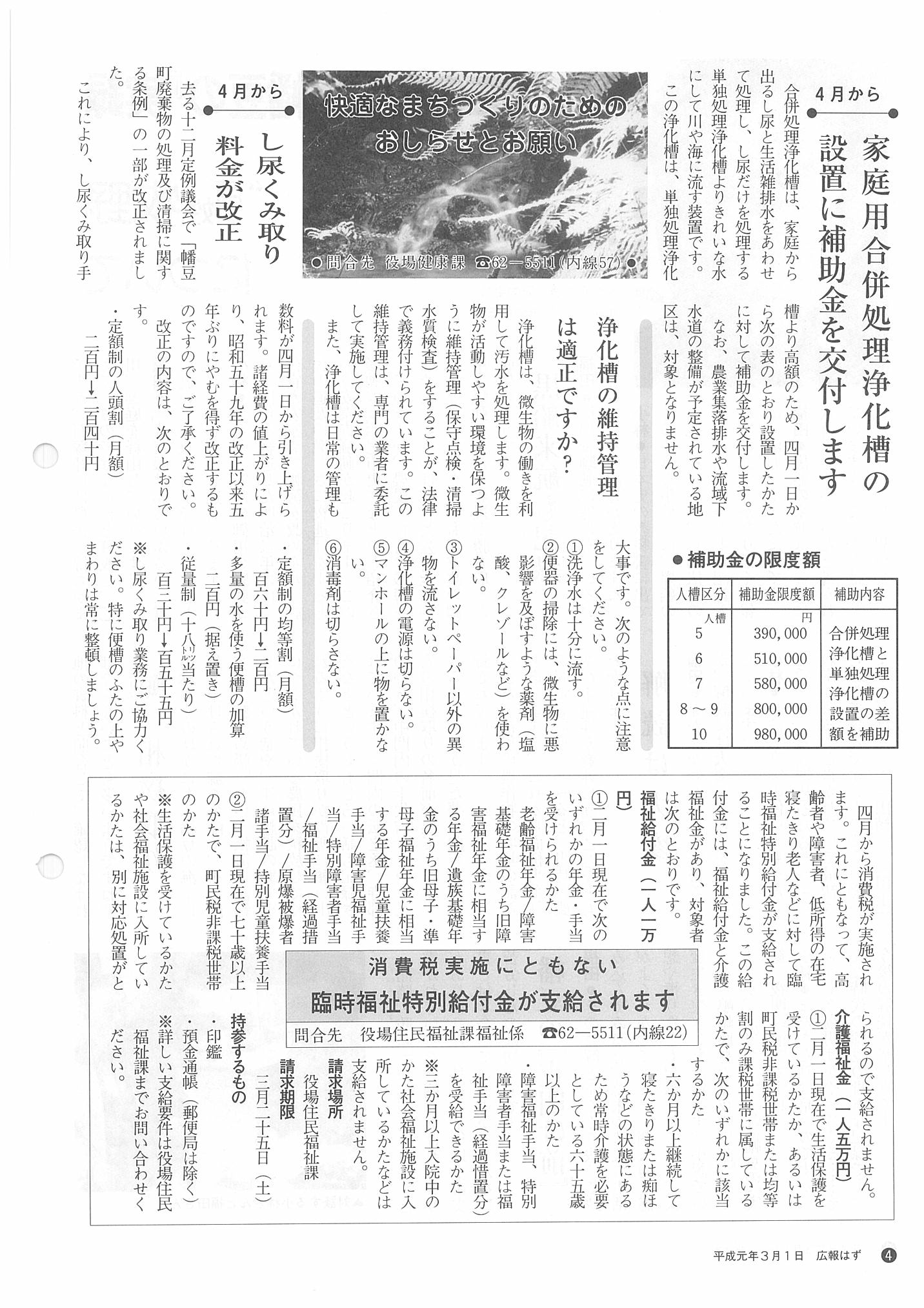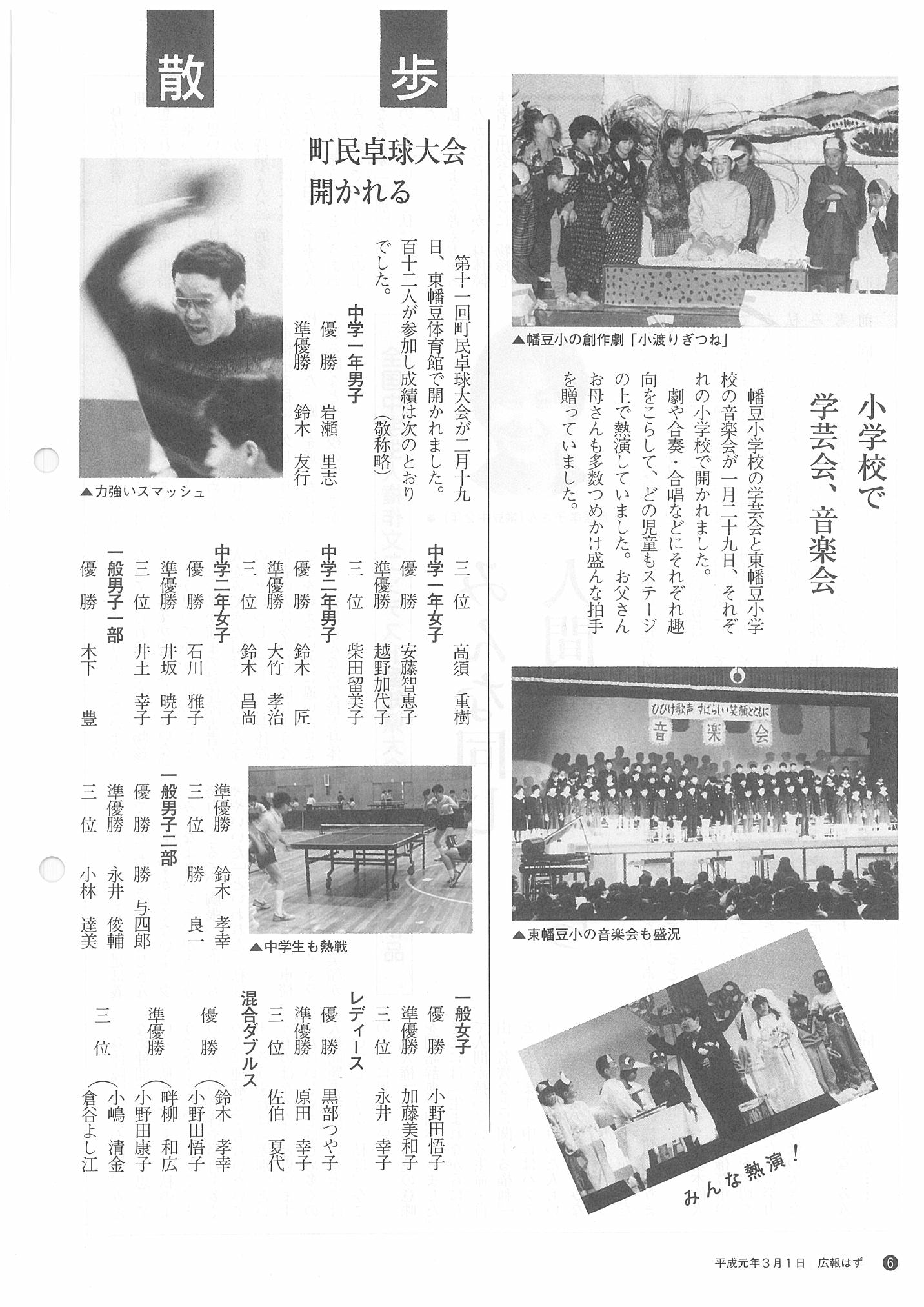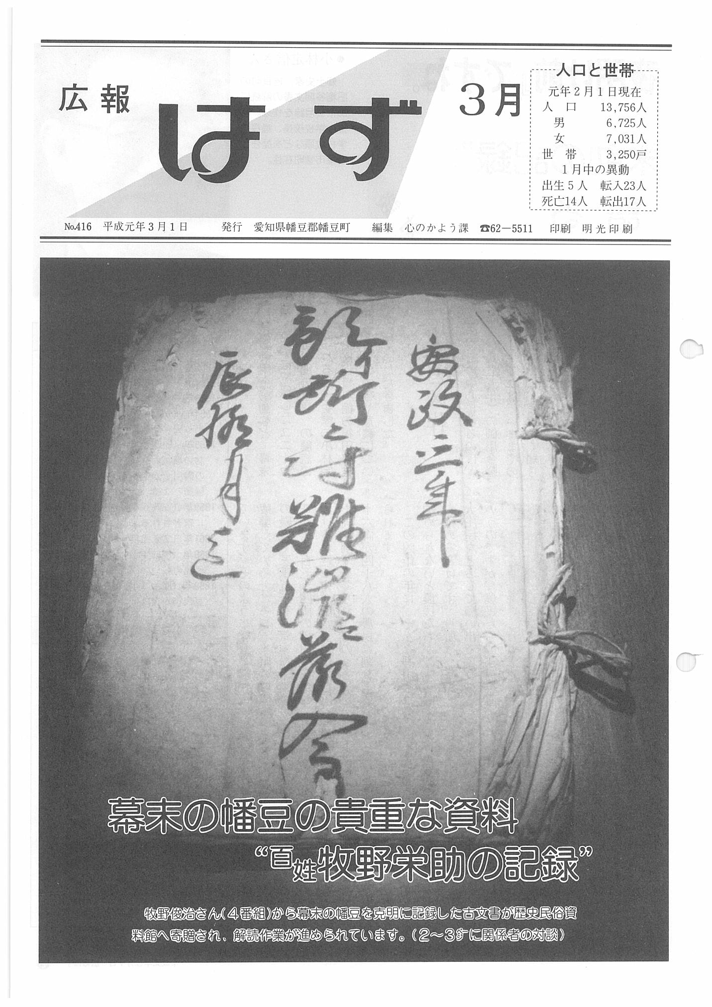 「広報はず」 1989年(平成元年) 3月号 目次