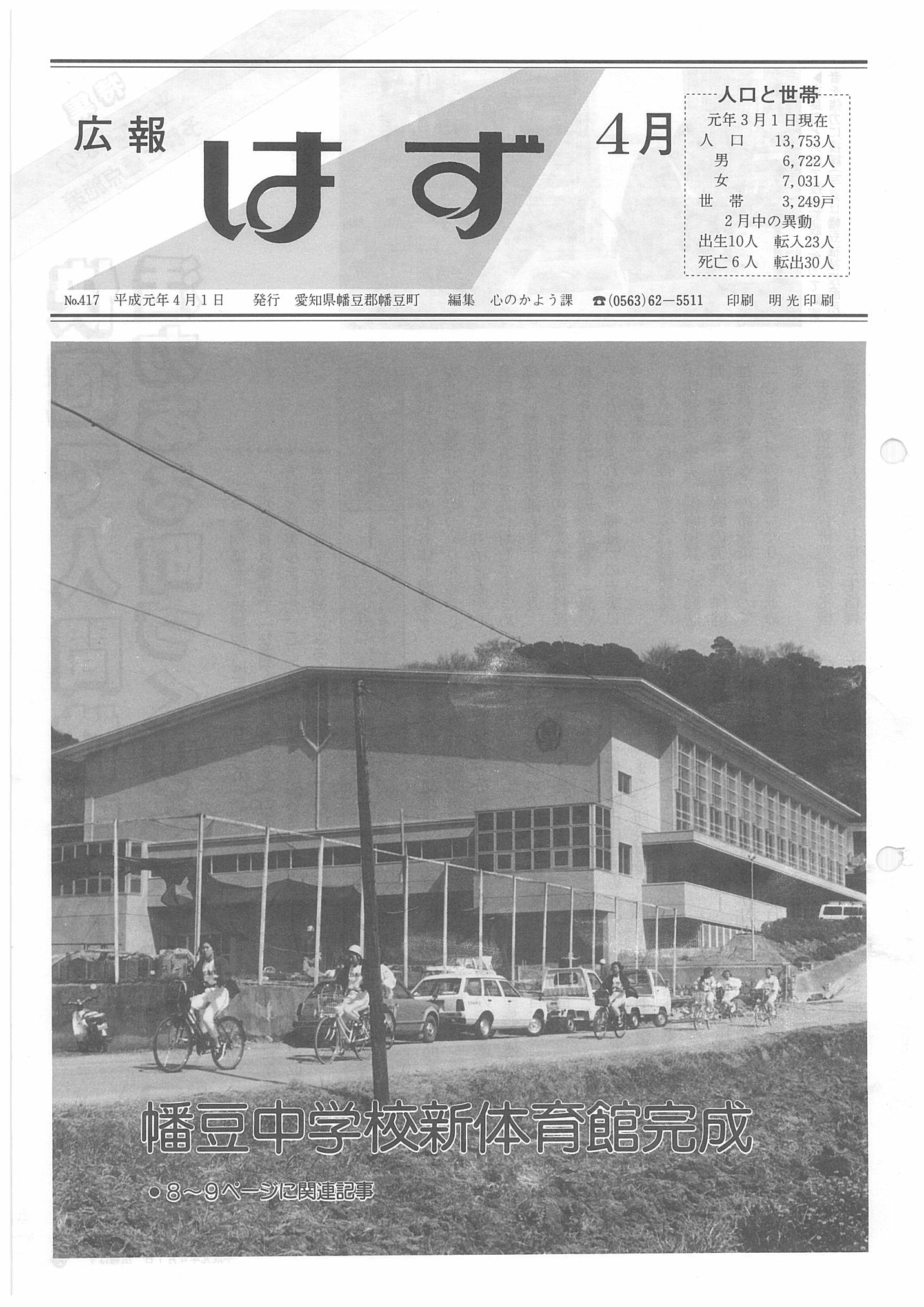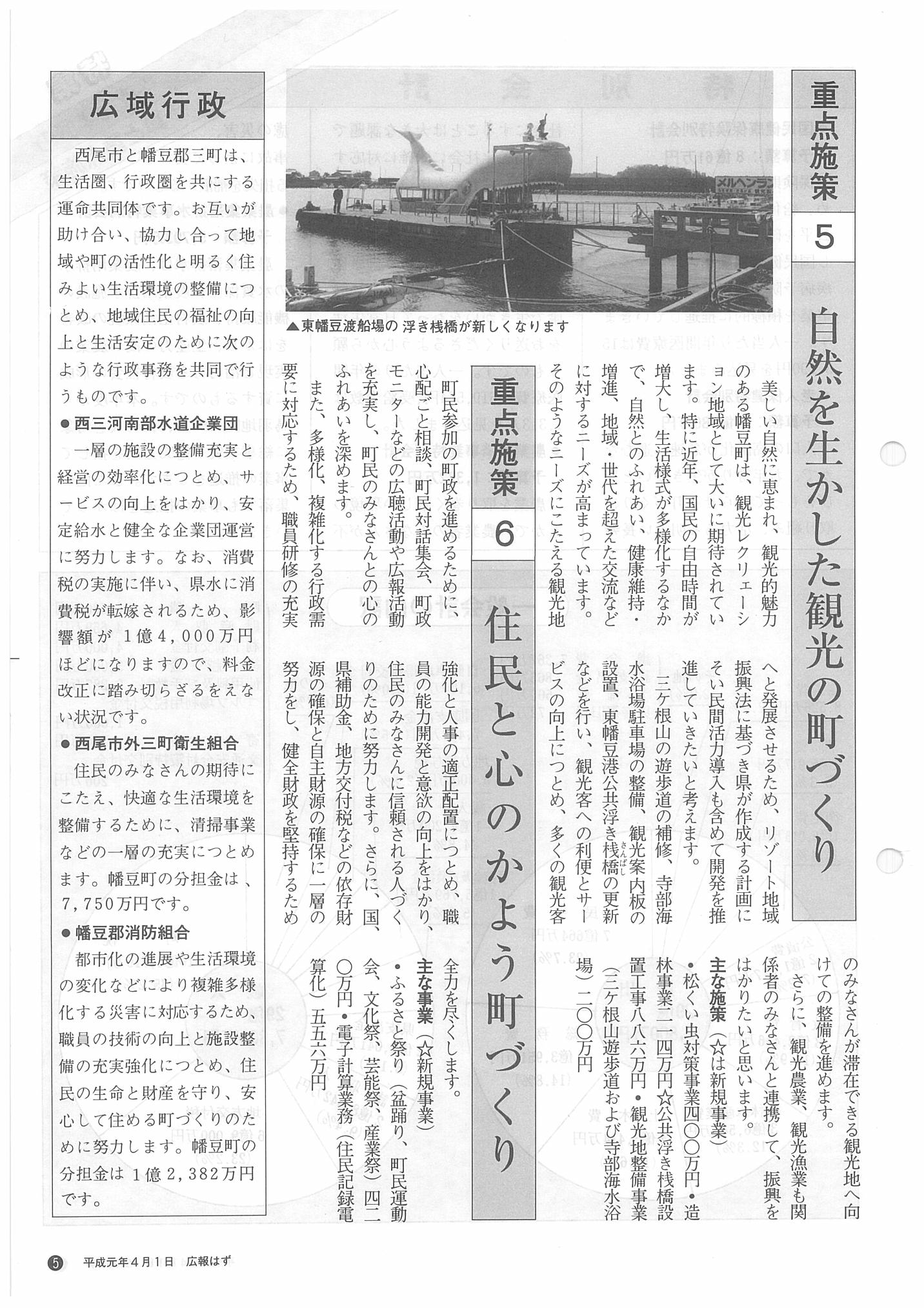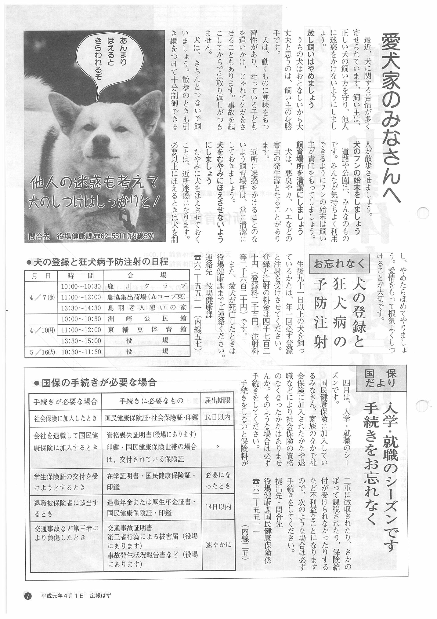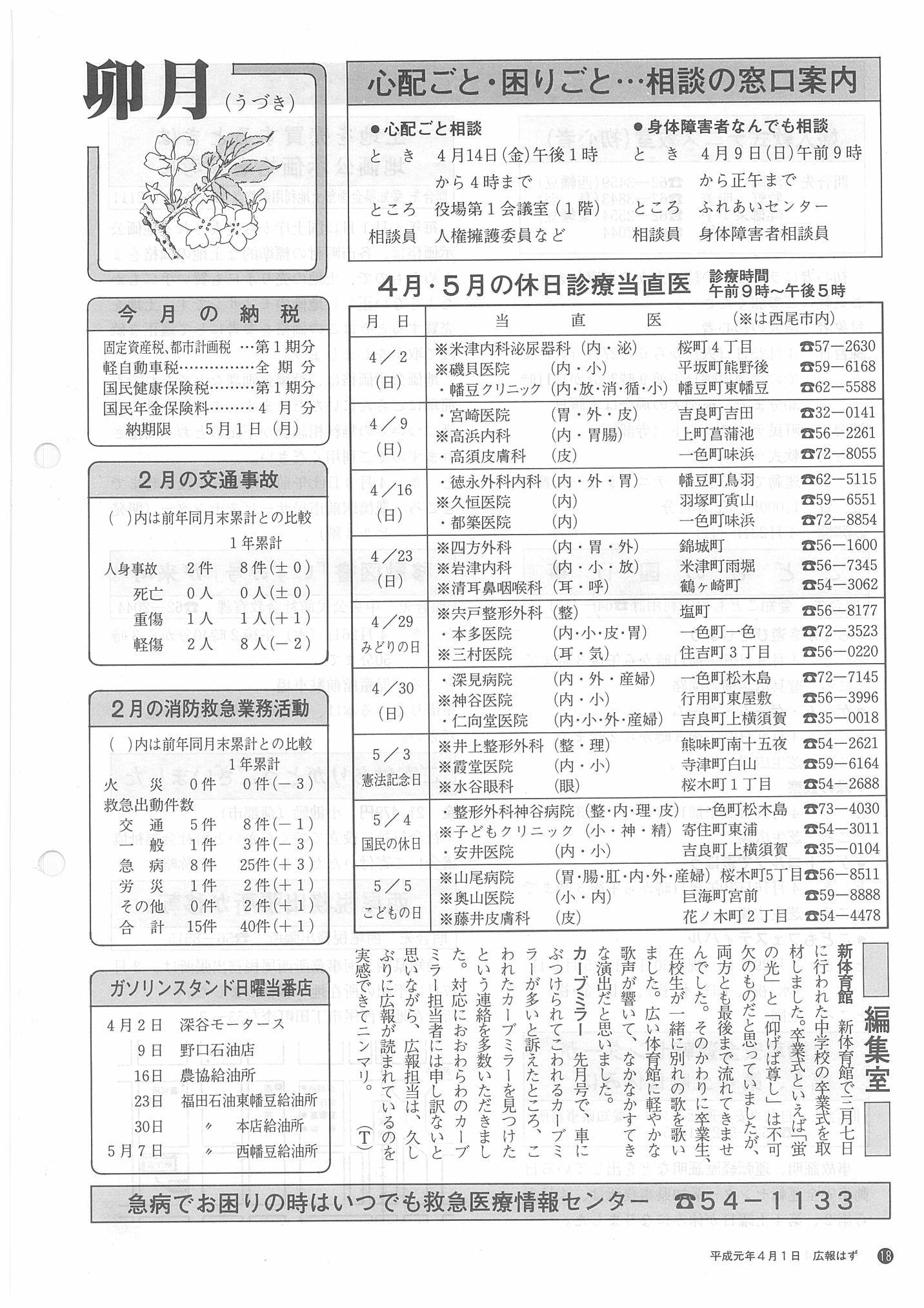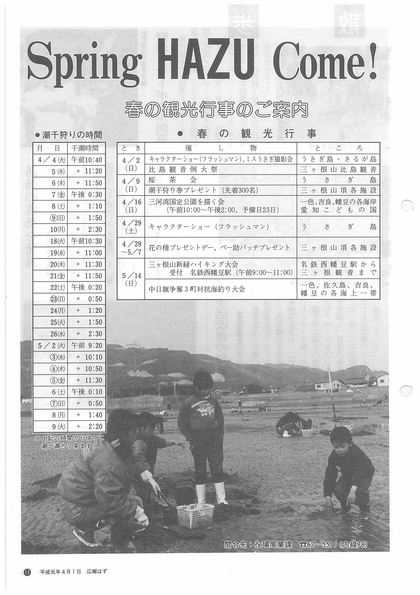 「広報はず」 1989年(平成元年) 4月号 目次