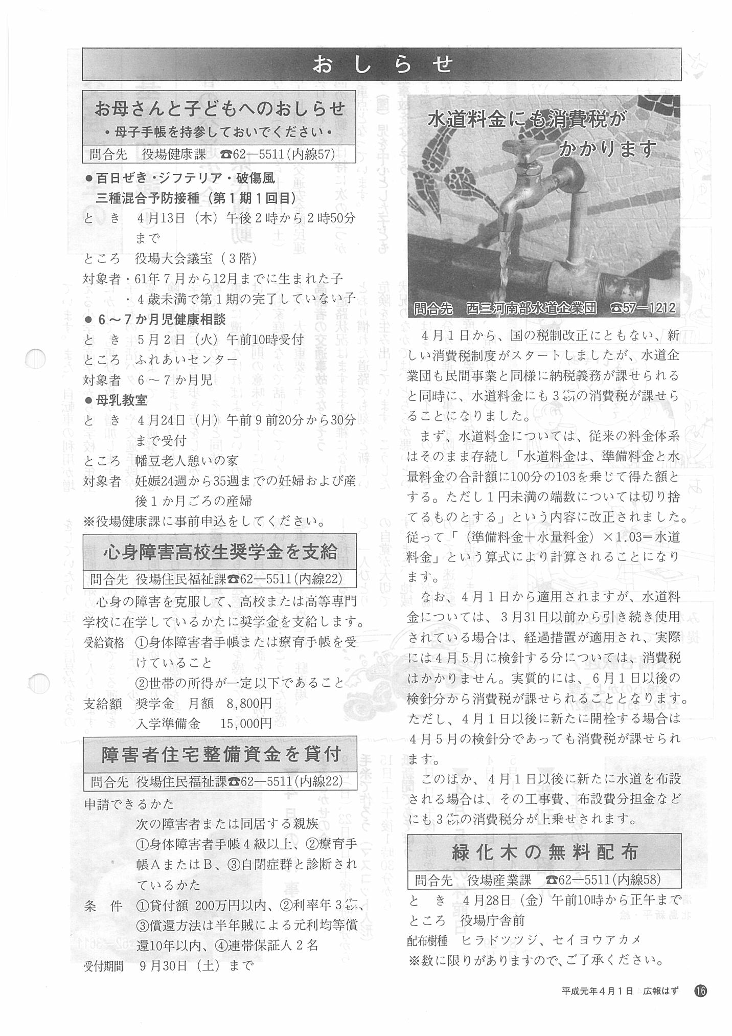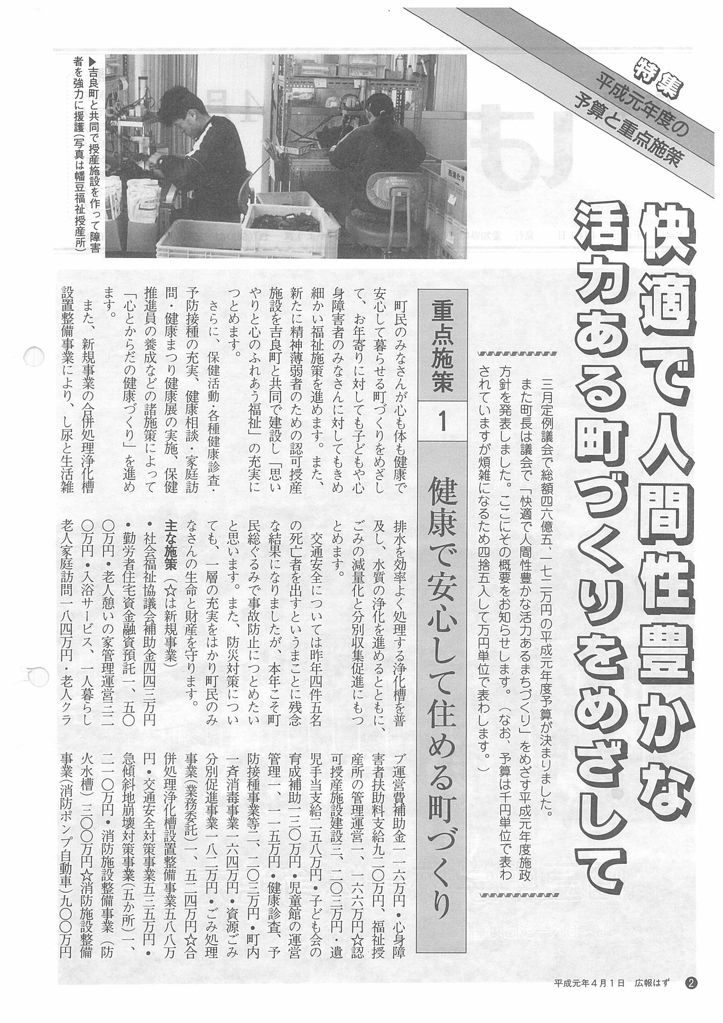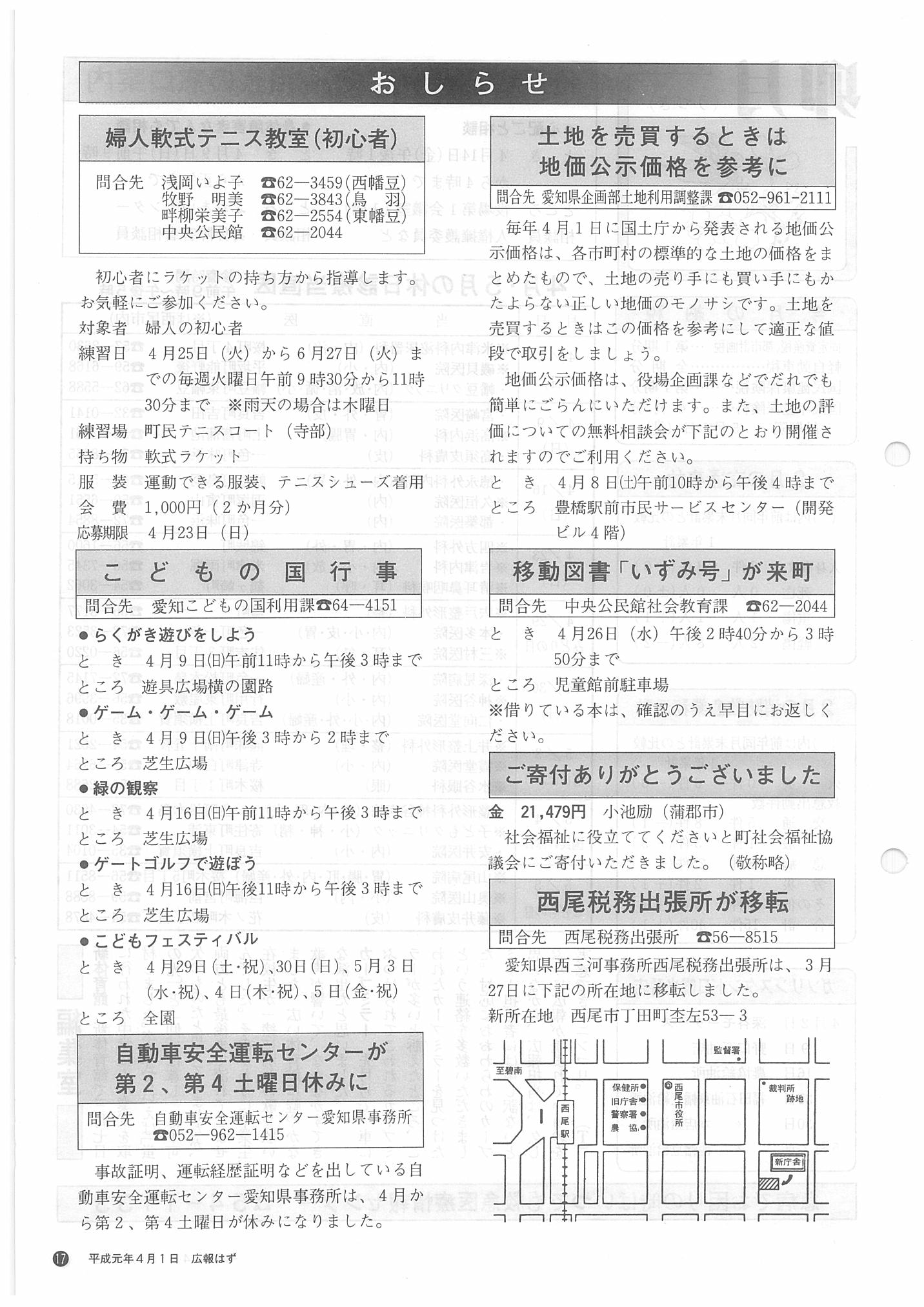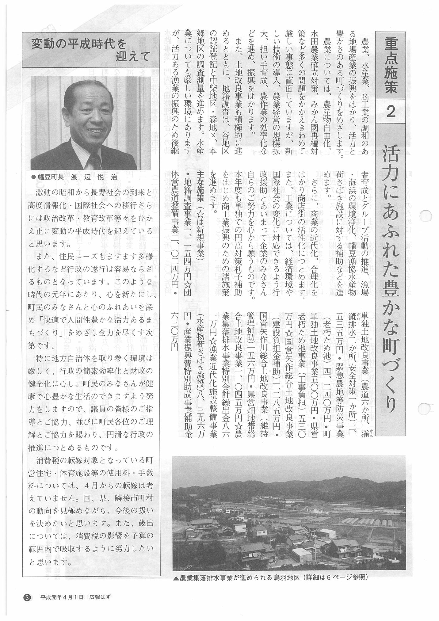 「広報はず」 1989年(平成元年) 4月号 目次