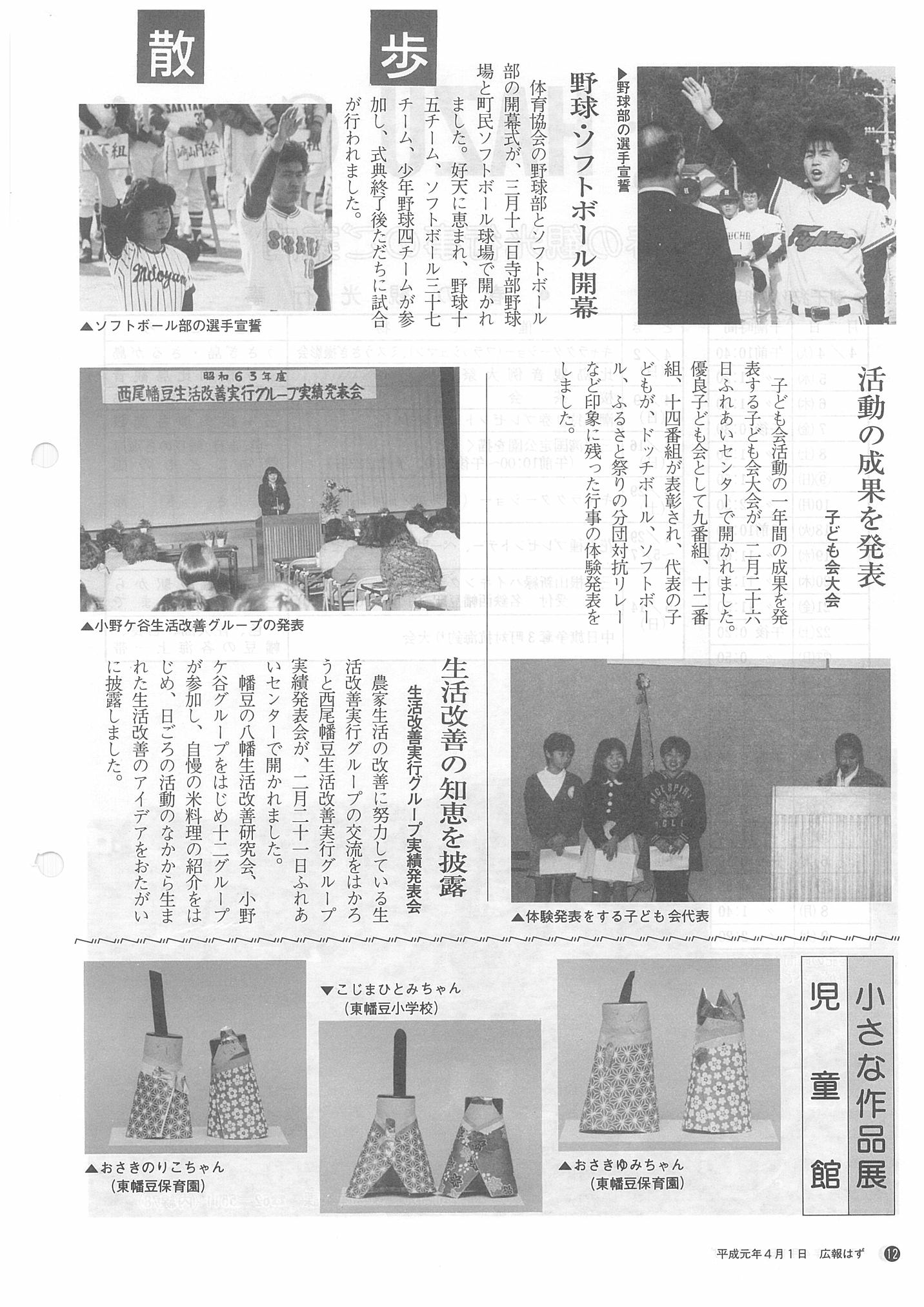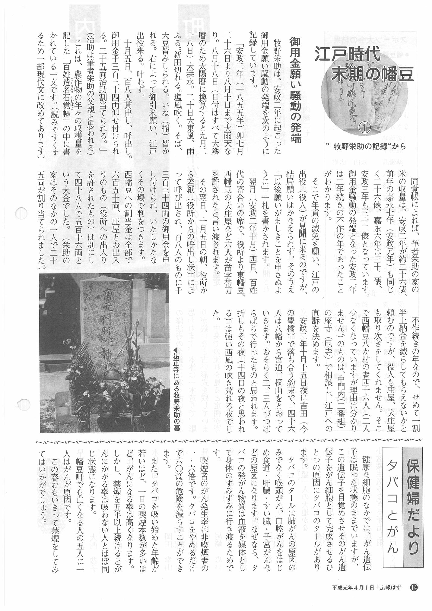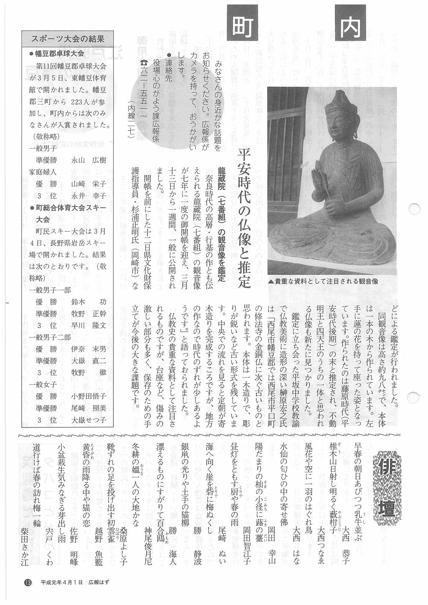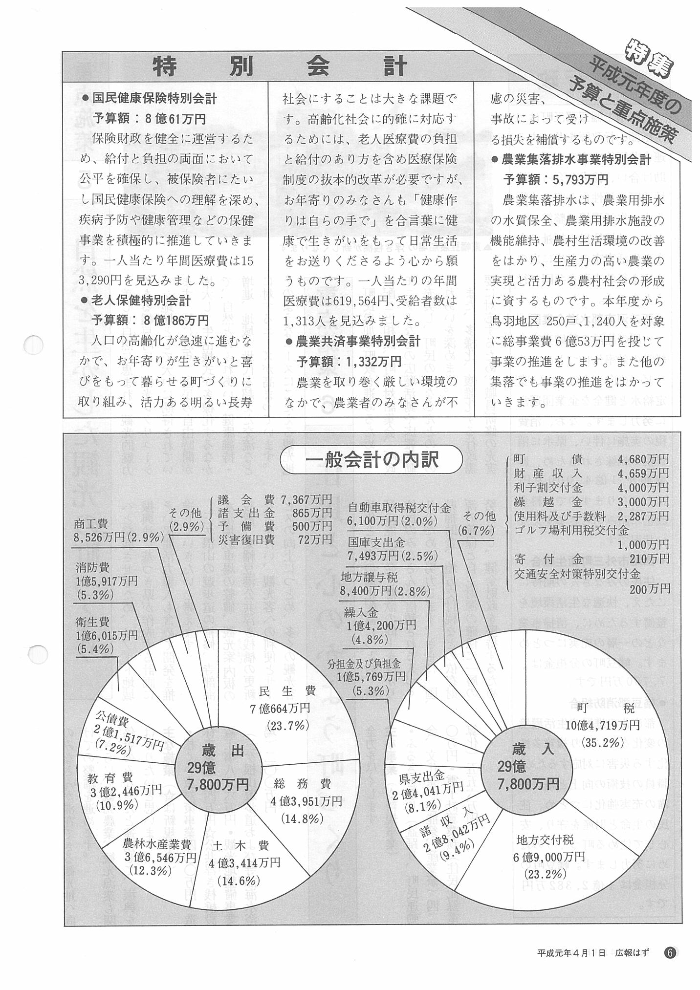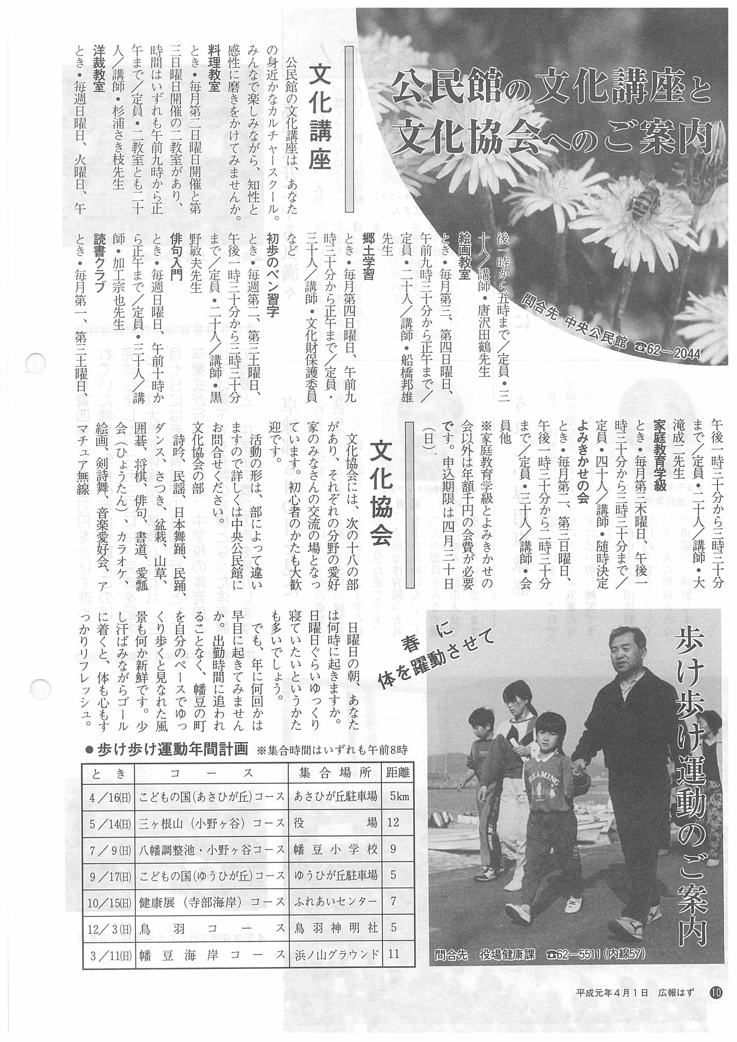 「広報はず」 1989年(平成元年) 4月号 目次