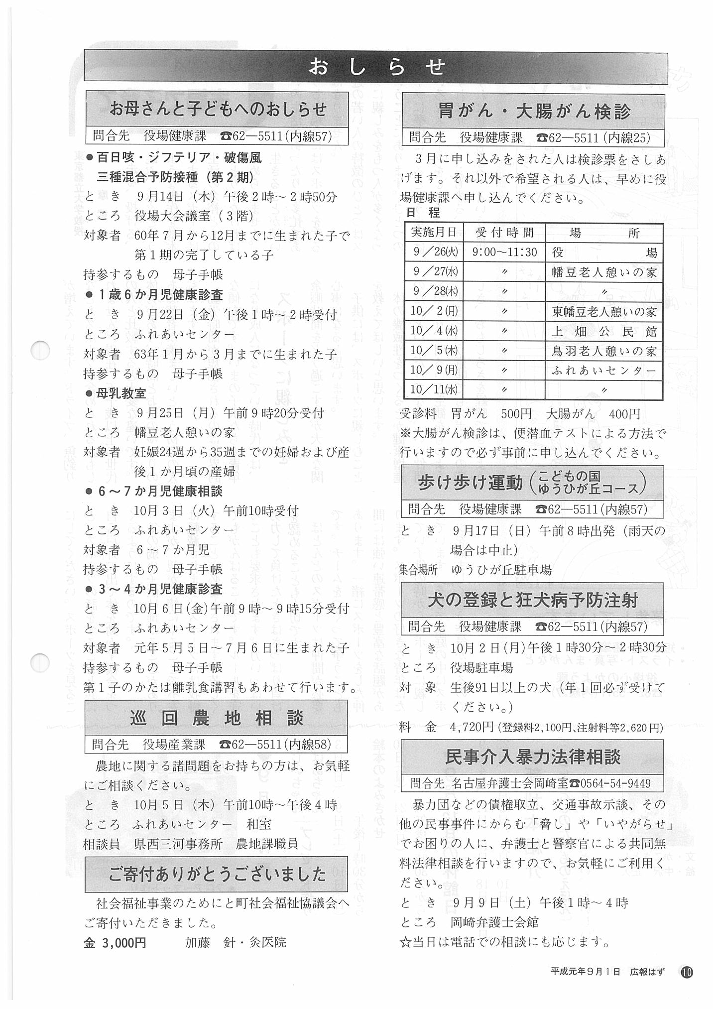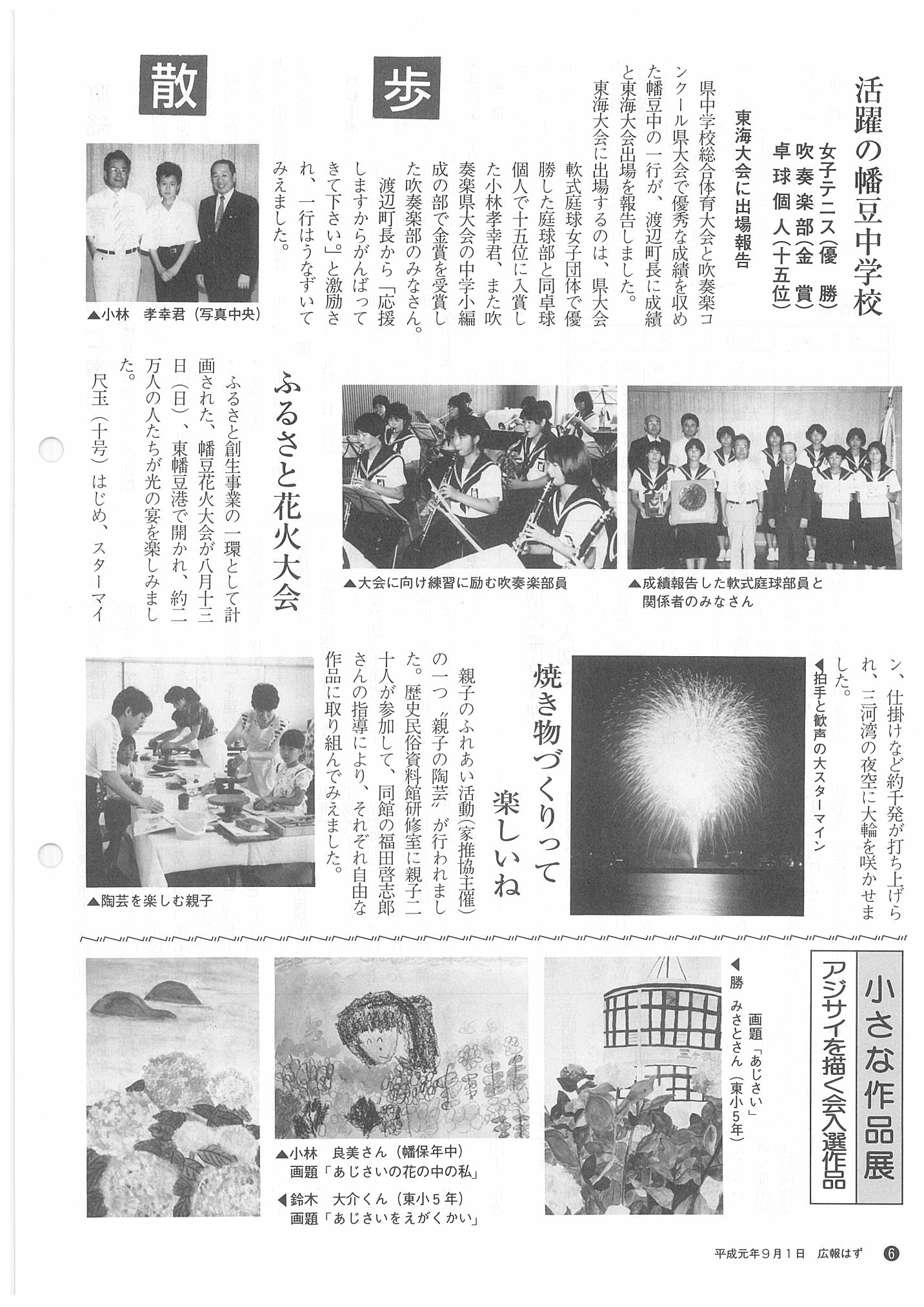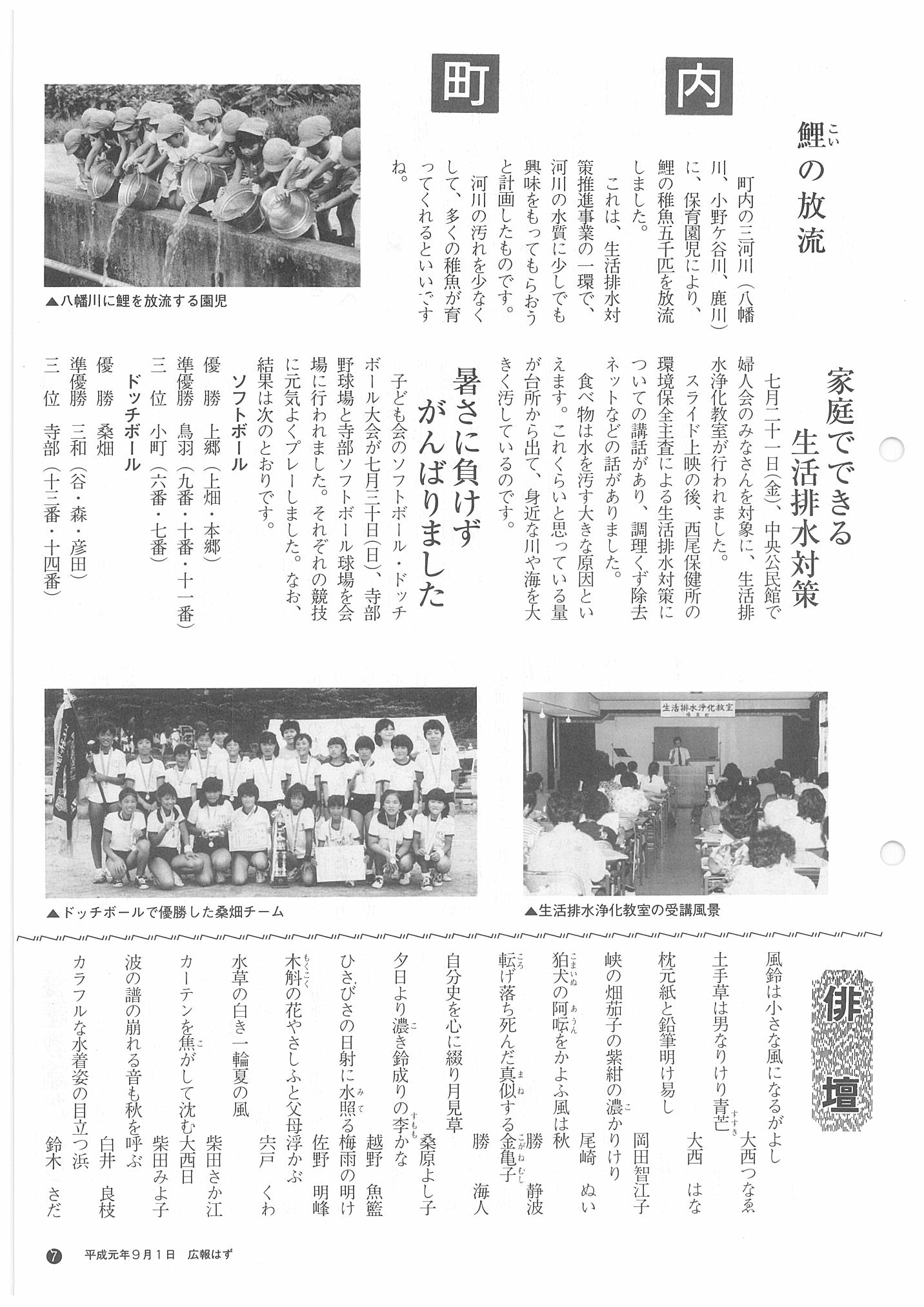 「広報はず」 1989年(平成元年) 9月号 目次