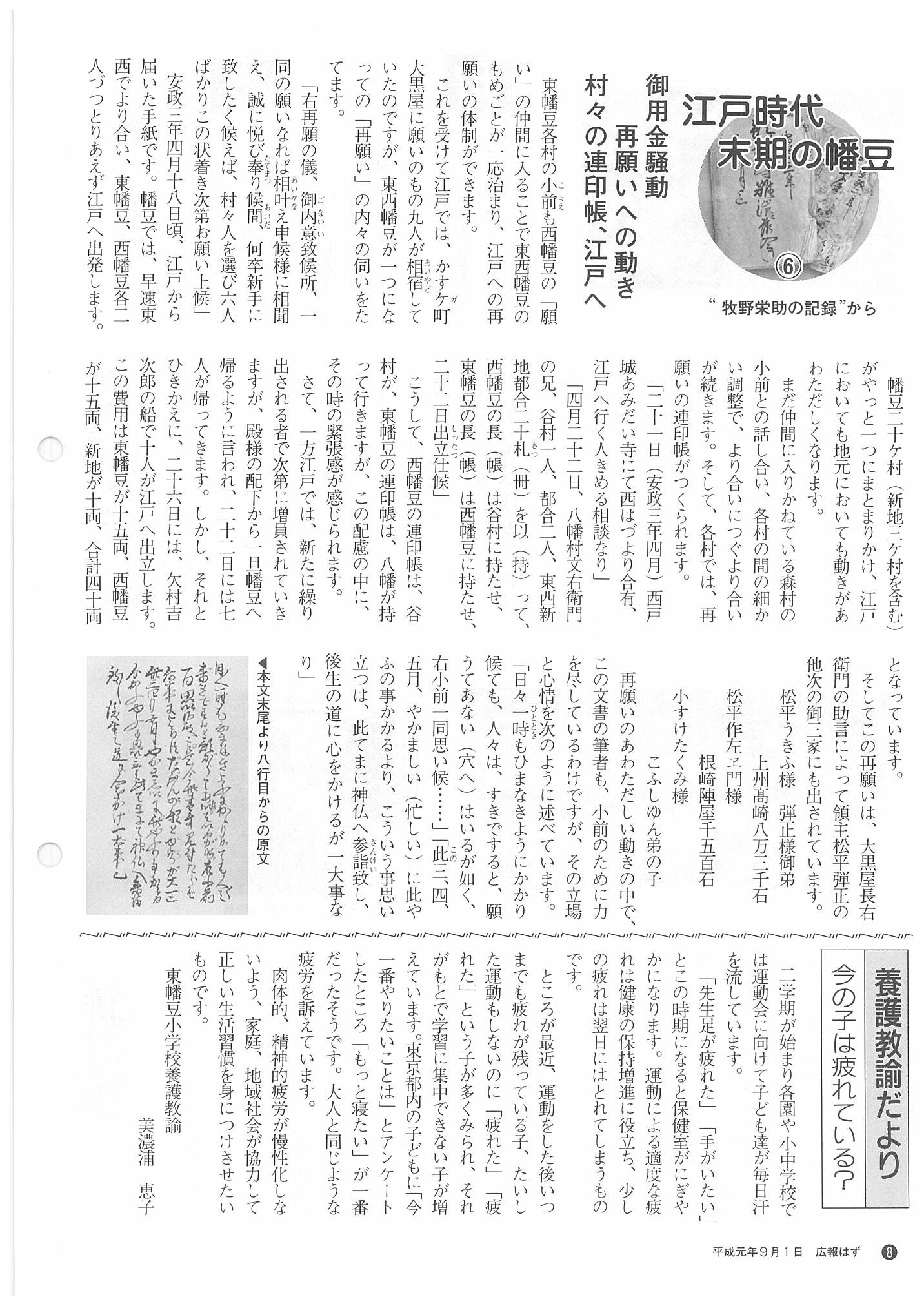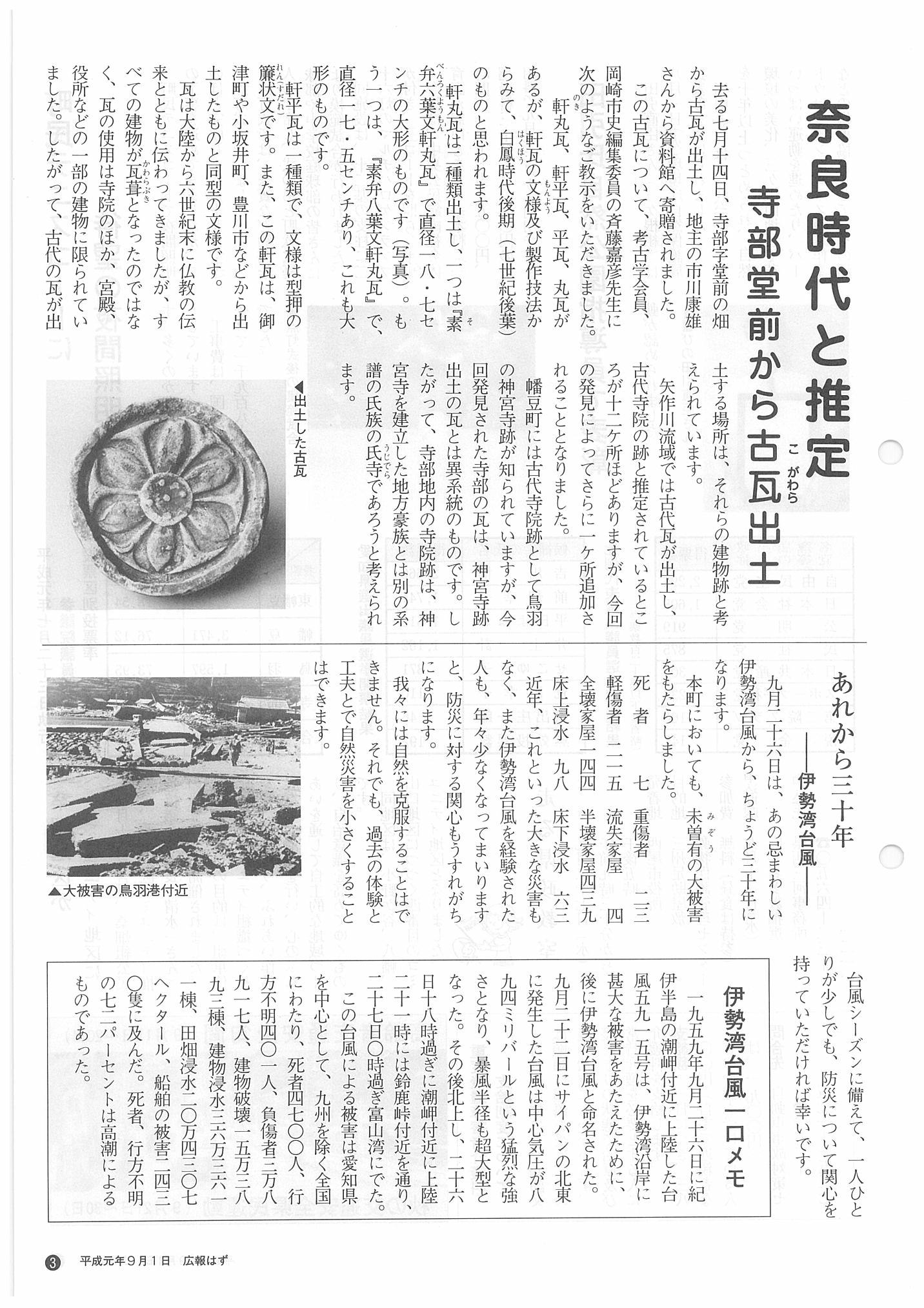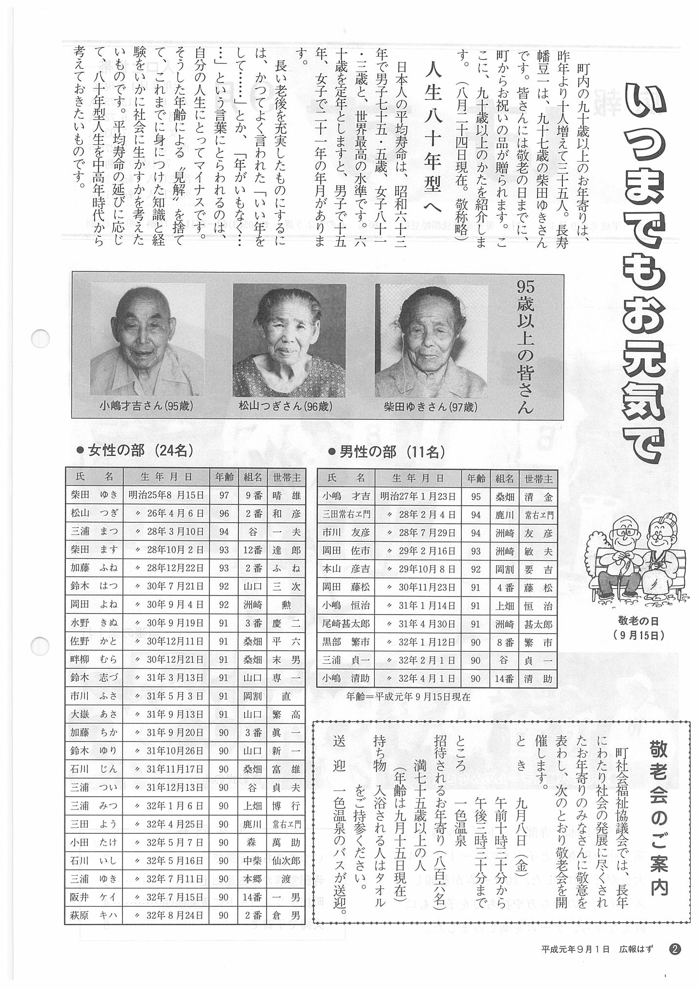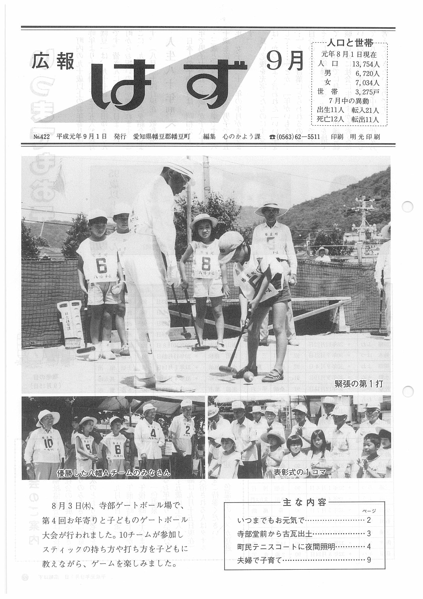 「広報はず」 1989年(平成元年) 9月号 目次