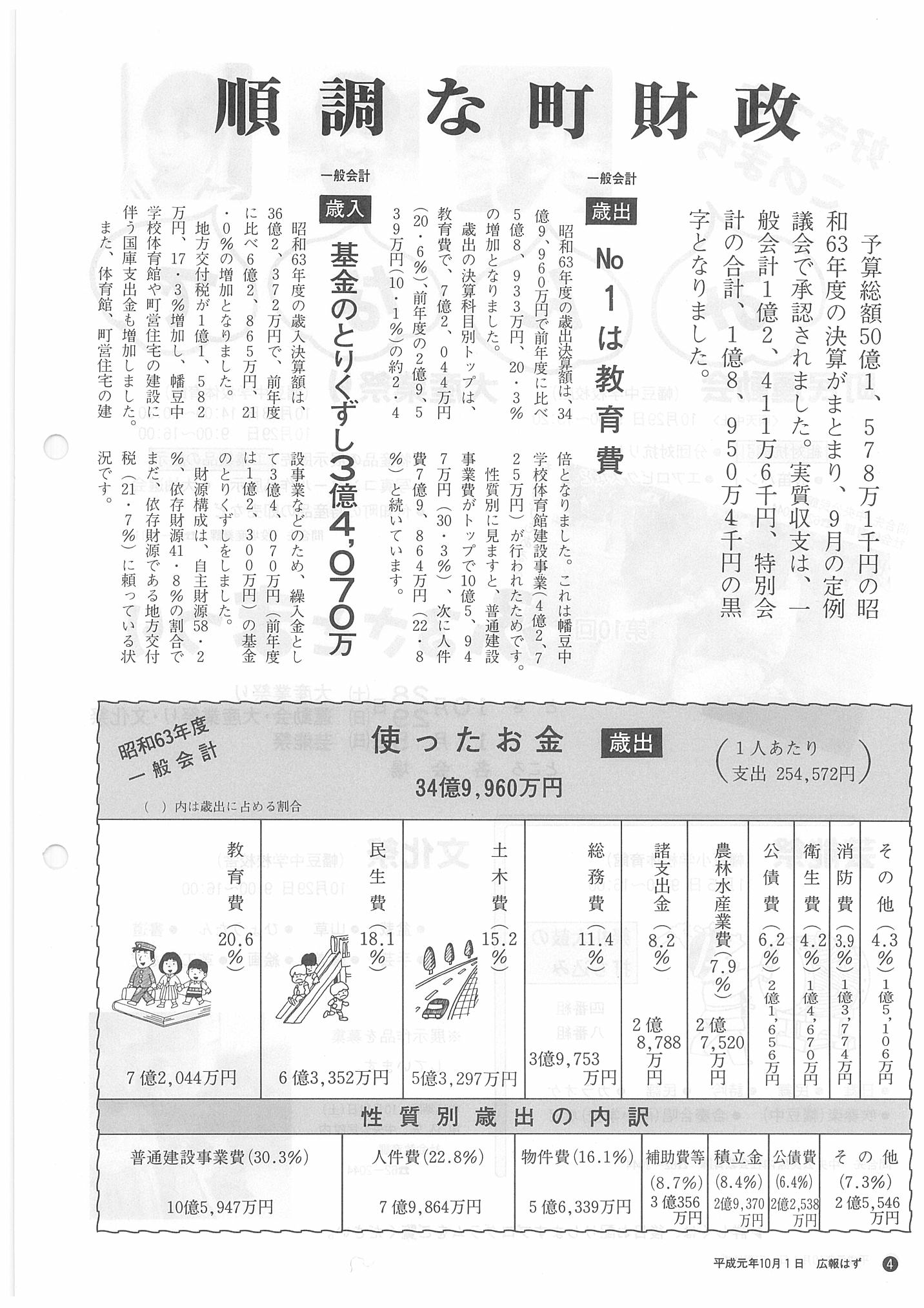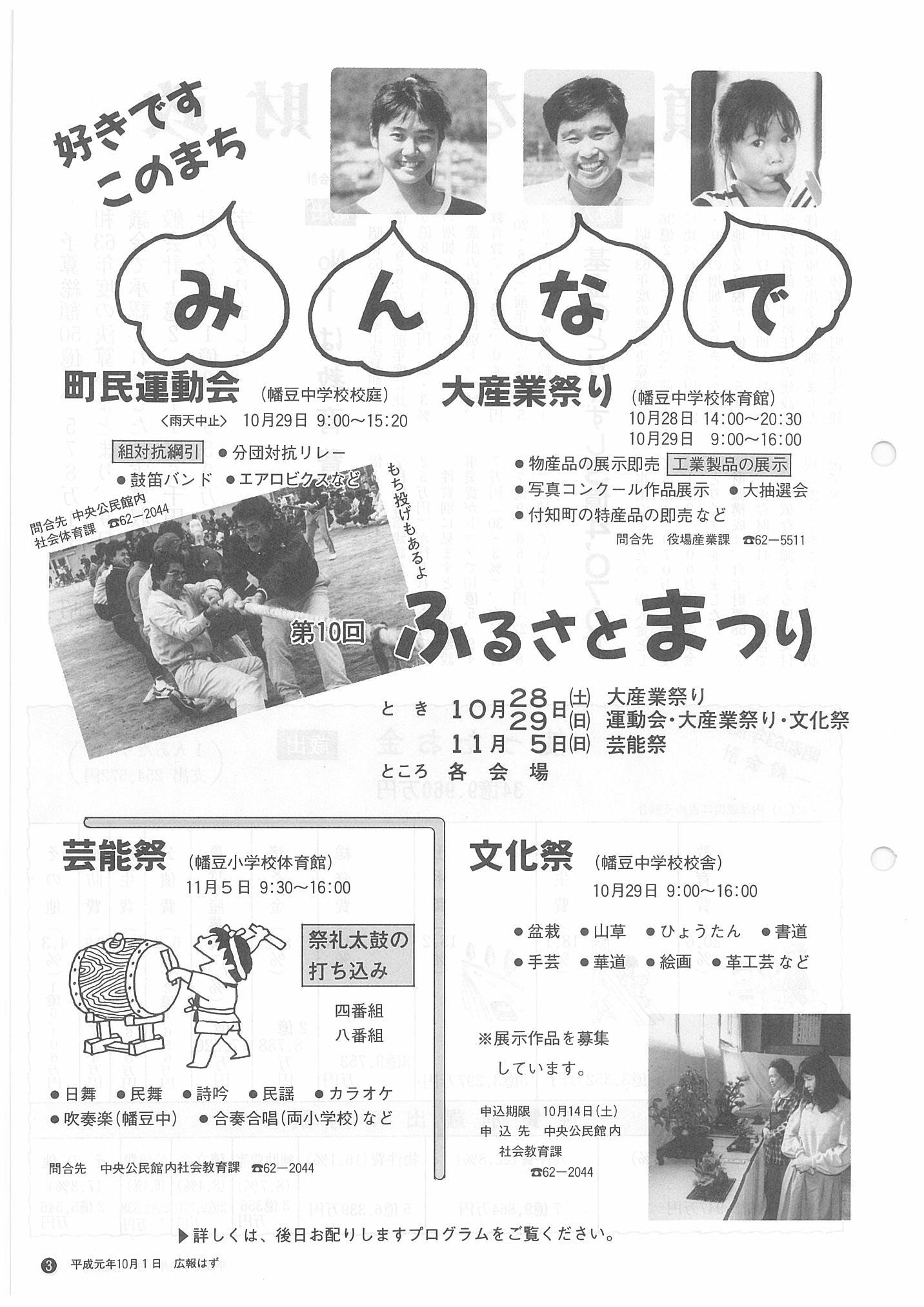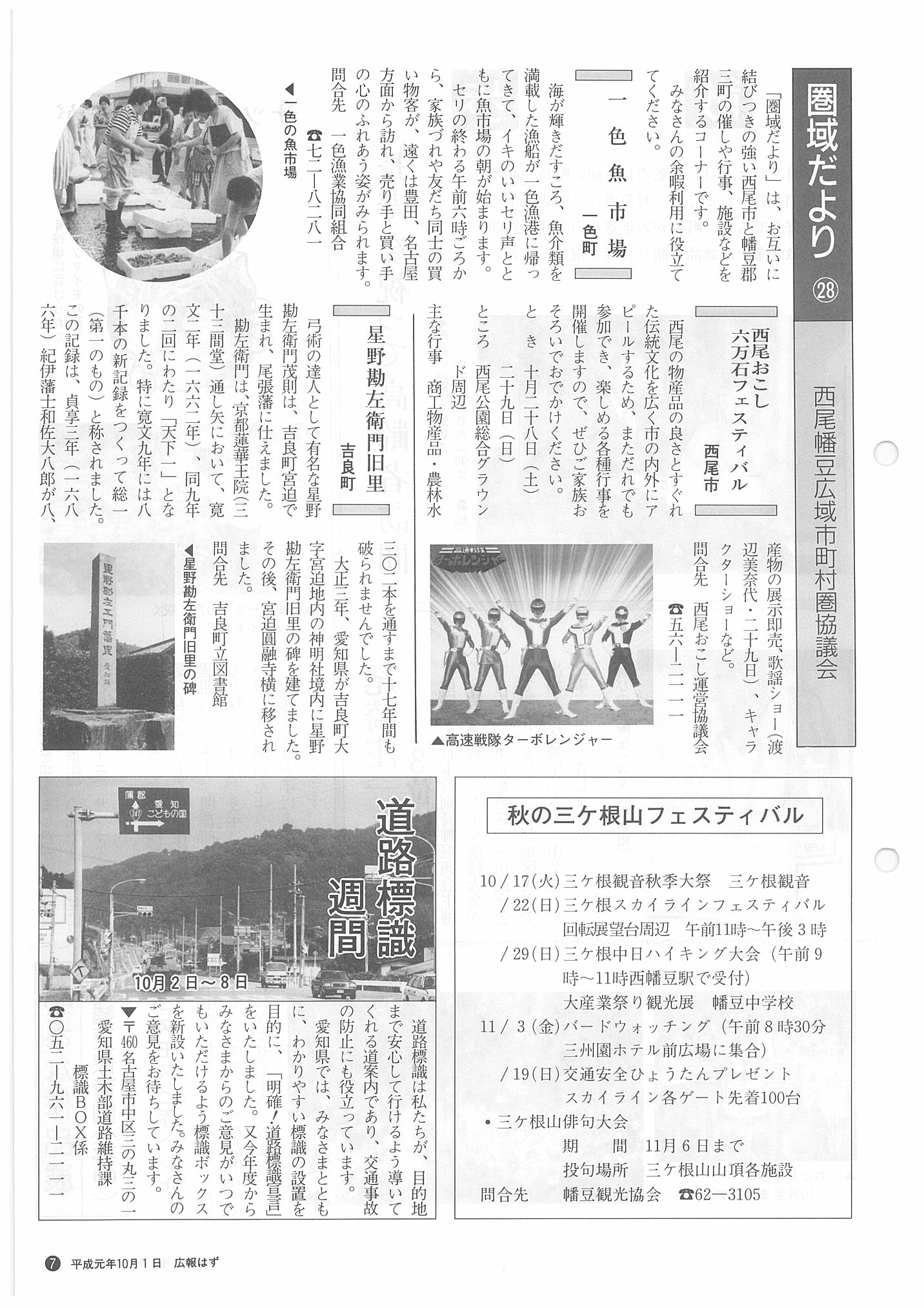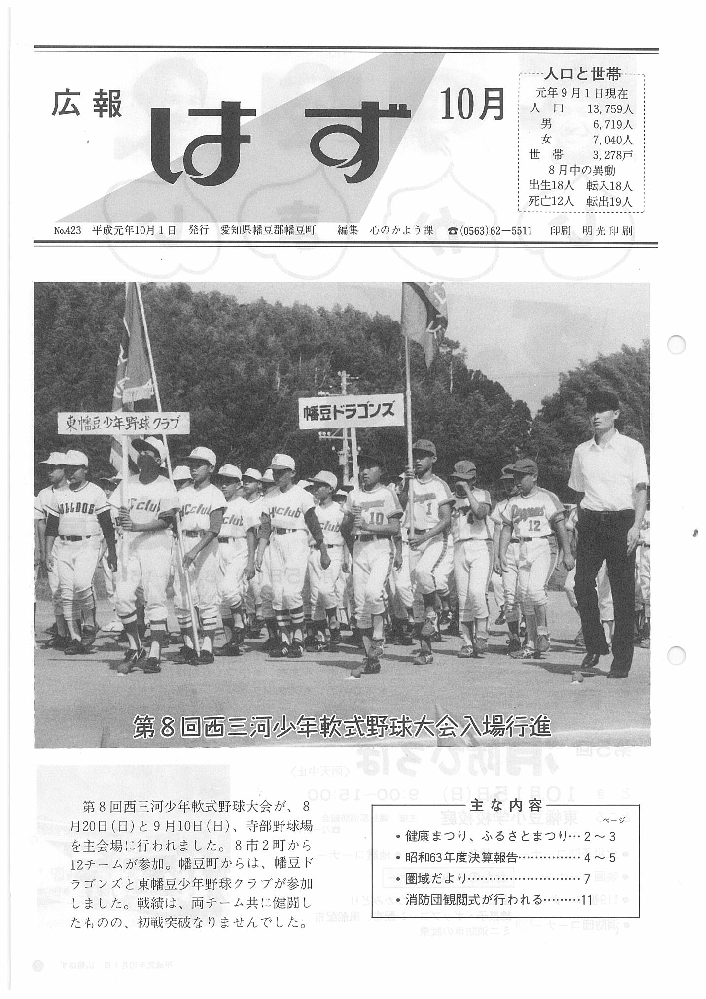 「広報はず」 1989年(平成元年) 10月号 目次